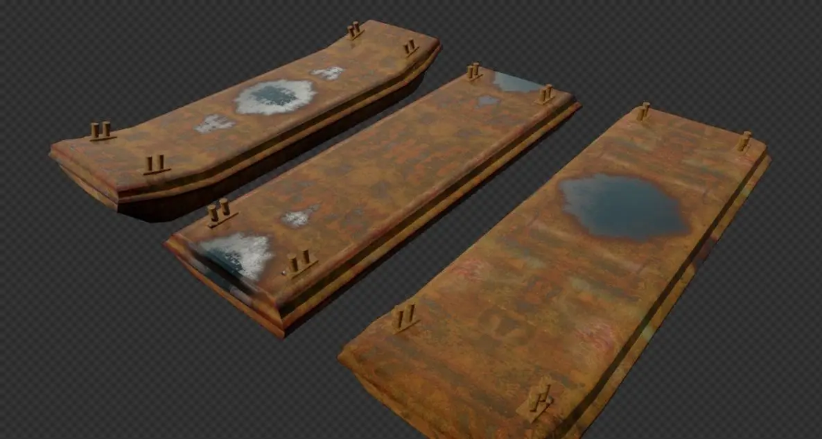 A set of 3 different barges with the accompanying bits. Super-low-poly ready for a game or animation. Texture maps are in 2k and include Diffuse, Roughness, Specular, and Normal. Barges are separated as well as the bits. Bit 1 parented to Barge 1 etc. as well as separated into collections in the blend file. Flat, Single Slope, and Double Slope Barges, Perfect for making Houseboats, Industrial Scenes, Or use as is. Subdivided Pic to show what 1 level of sub-d looks like on em. Just turn on Sub-D in the Blend file if that's the look ya want. Thanks for looking and Have a Great Day. Any questions, let me know.