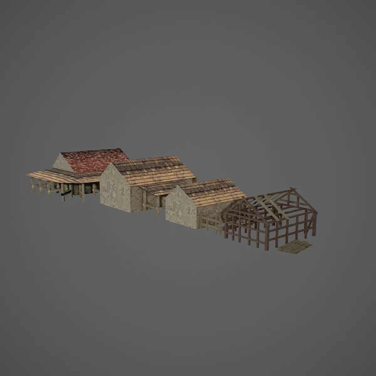 High-quality low-poly 3d model of the medieval Barn. Buildings for create new worlds and new universes in the style of a medieval RPG.The model is optimized for use in browser and isometric games. 3D model has all the necessary texture maps for PBR renderer.All textures included.Real world size (meters).
