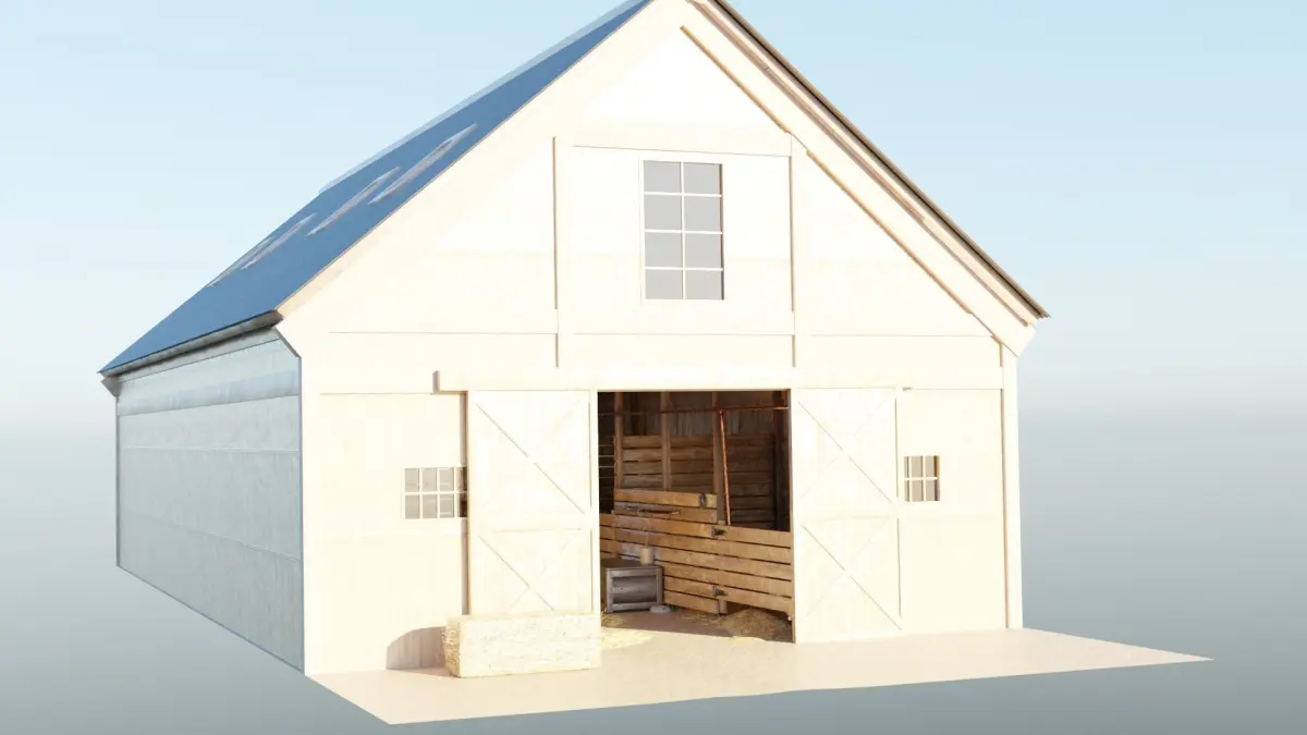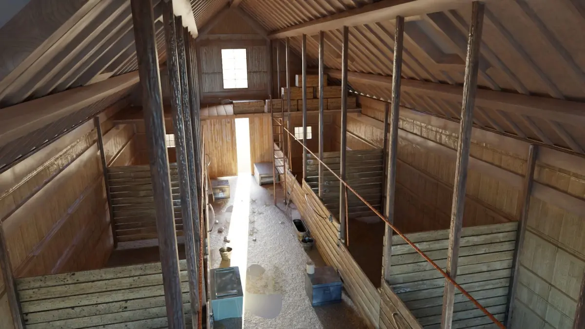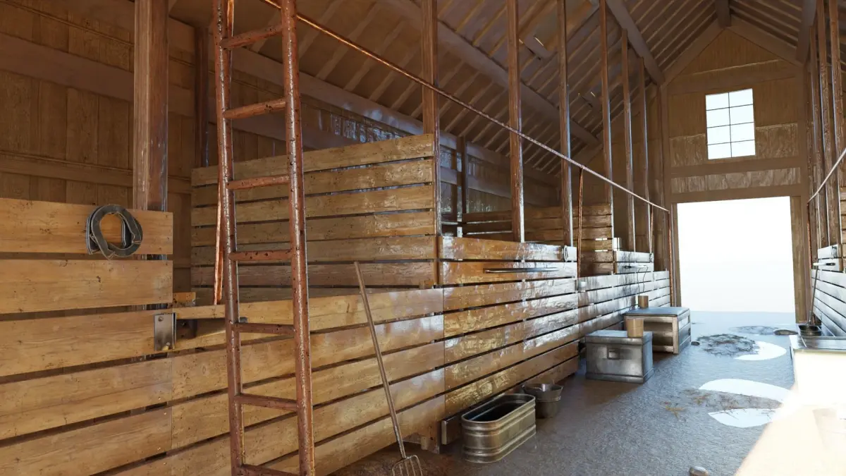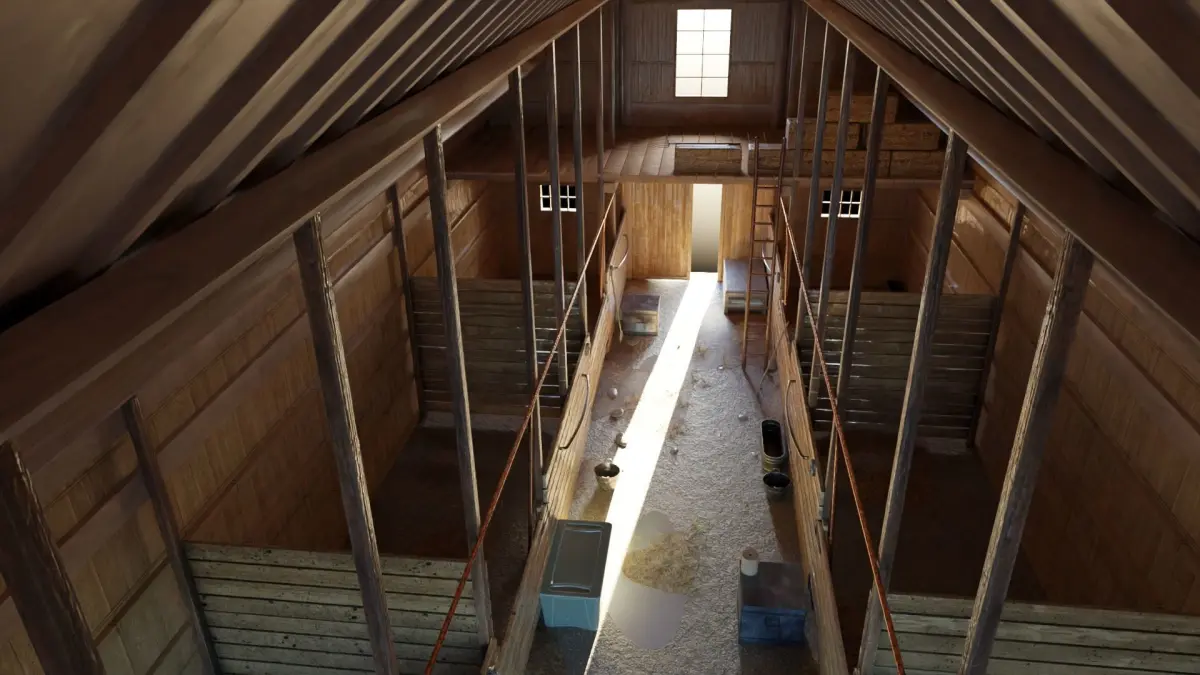 A detailed interior scene of a barn, ready to use with textures and materials. Pecfect for you farm renders - or others!