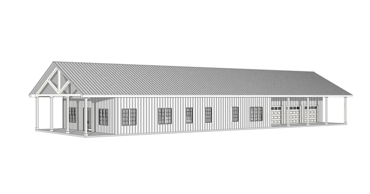 Experience the warmth of Archimple LLC's stunning 3D exterior model—a barndominium-style house designed to captivate.