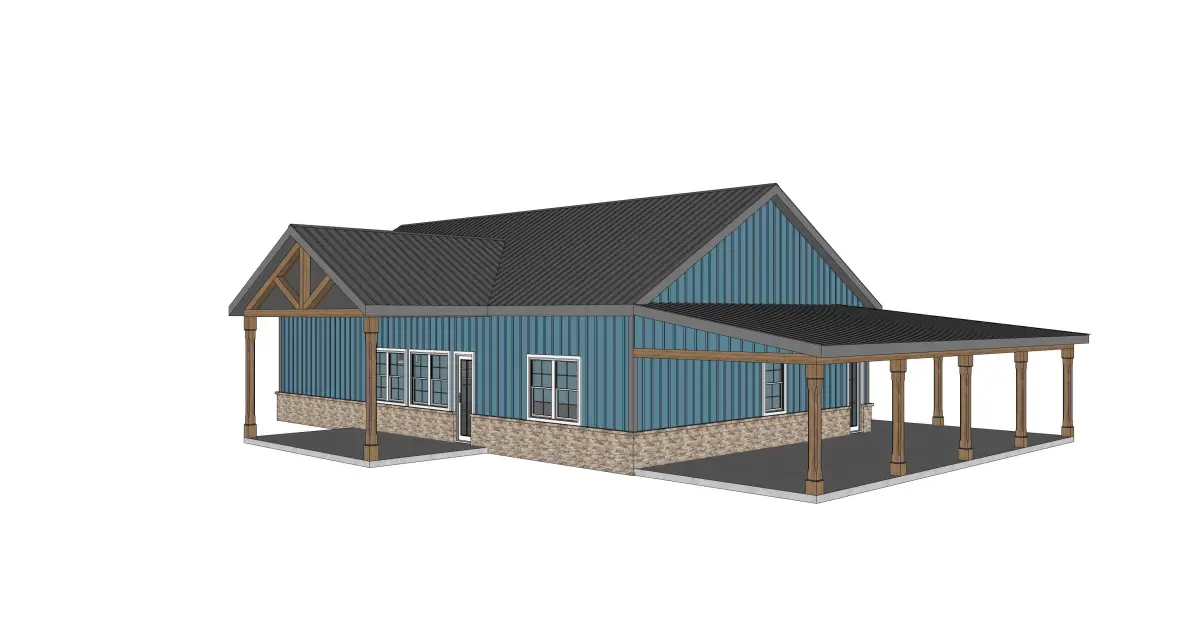 Welcome to Archimple LLC, where innovation meets architecture. Behold our striking 3D exterior model, showcasing a captivating barn-style house design that defines convention.Our 3D barndominium model boasts distinctive and efficient designs and showcase an elegant roof and top-notch textures, radiating style and sophistication. This 3D model provides multiple realistic views for easy layout understanding. This game-ready texture features a low-poly design, ensuring optimal performance and immersion throughout.
