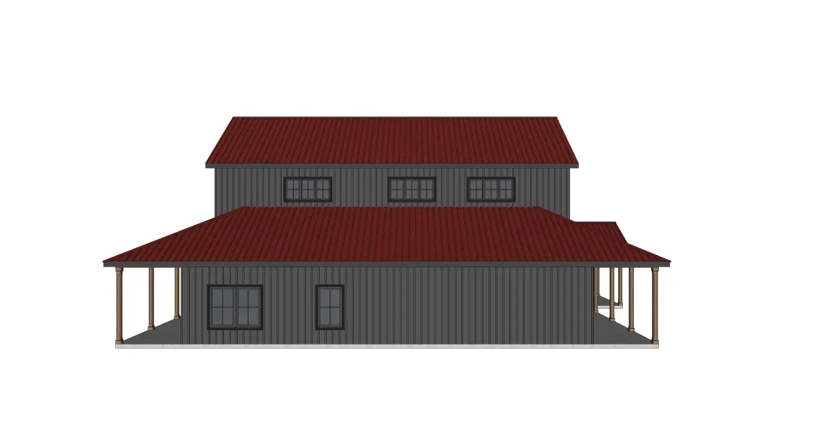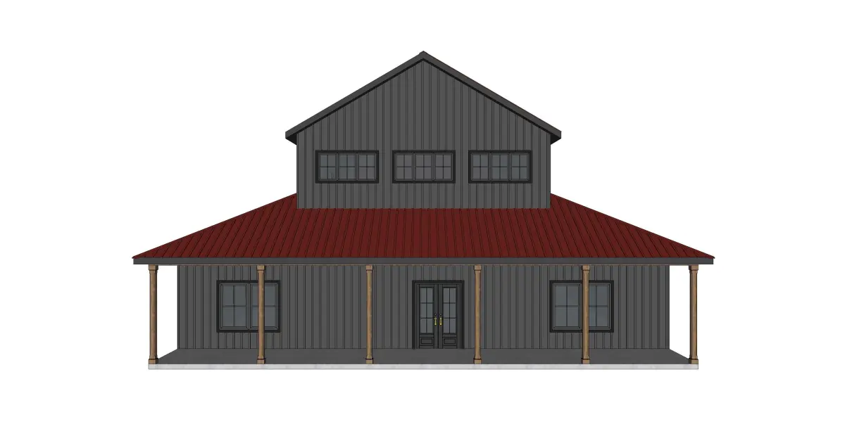 Step into Archimple LLC's breathtaking 3D exterior model—an enchanting barndominium-style residence meticulously crafted with SketchUp, reflecting our unmatched architectural expertise.Explore the pinnacle of rustic elegance in Archimple LLC's exquisite 3-bedroom Barndominium. Unwind in the spacious great room with a cozy fireplace seamlessly connected to the open kitchen. Indulge in the master suite's double vanity bath with a separate tub and shower, while the other bedrooms share a convenient double vanity Jack and Jill bath. Step outside to relax on the covered entry porch and rear porch with a convenient carport area. With walk-in closets in every bedroom, a utility powder bath, and a mechanical room, comfort and convenience are at the forefront. Experience the perfect fusion of rustic charm and modern living with Archimple LLC's exceptional design.Contact Archimple LLC today for custom 3D designs that match your vision. Keep an eye on our website for the newest updates and offerings.