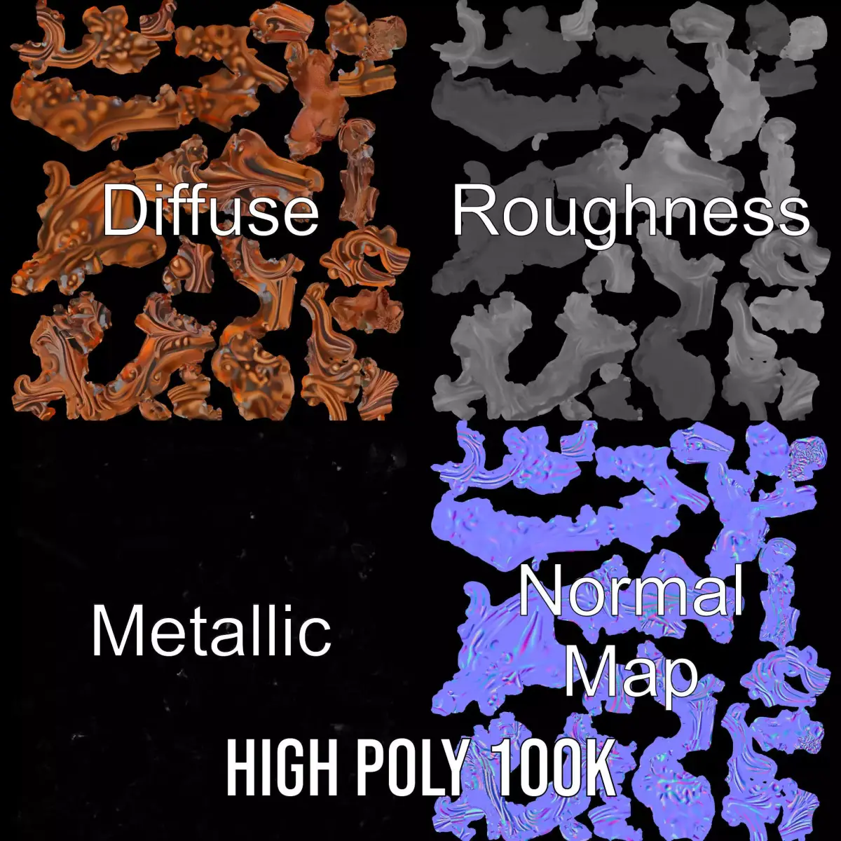 This ornate baroque-style cherub ornament is perfect for enhancing classical architectural designs, interior decor projects, and 3D visualizations. Its intricate detailing and elegant flow make it ideal for historic restorations, luxurious home accessories, or fine art renderings. The model offers three levels of detail, accommodating various platforms, from mobile games to high-end production rendering. It's crafted with precision UV unwrapping and high-resolution 4096x4096 PBR textures to ensure quality and realism across all applications. Enjoy seamless integration with modern rendering engines and game development environments.