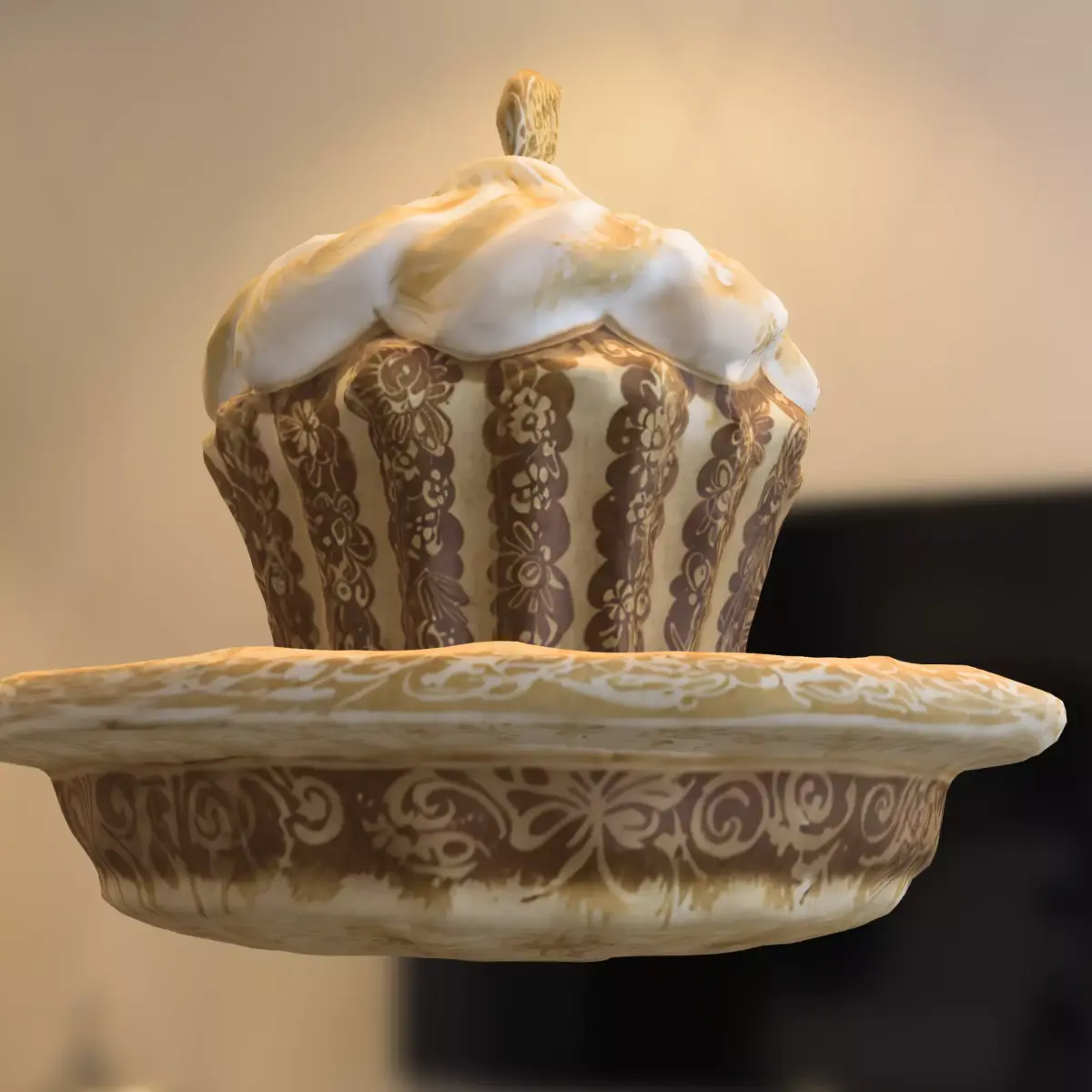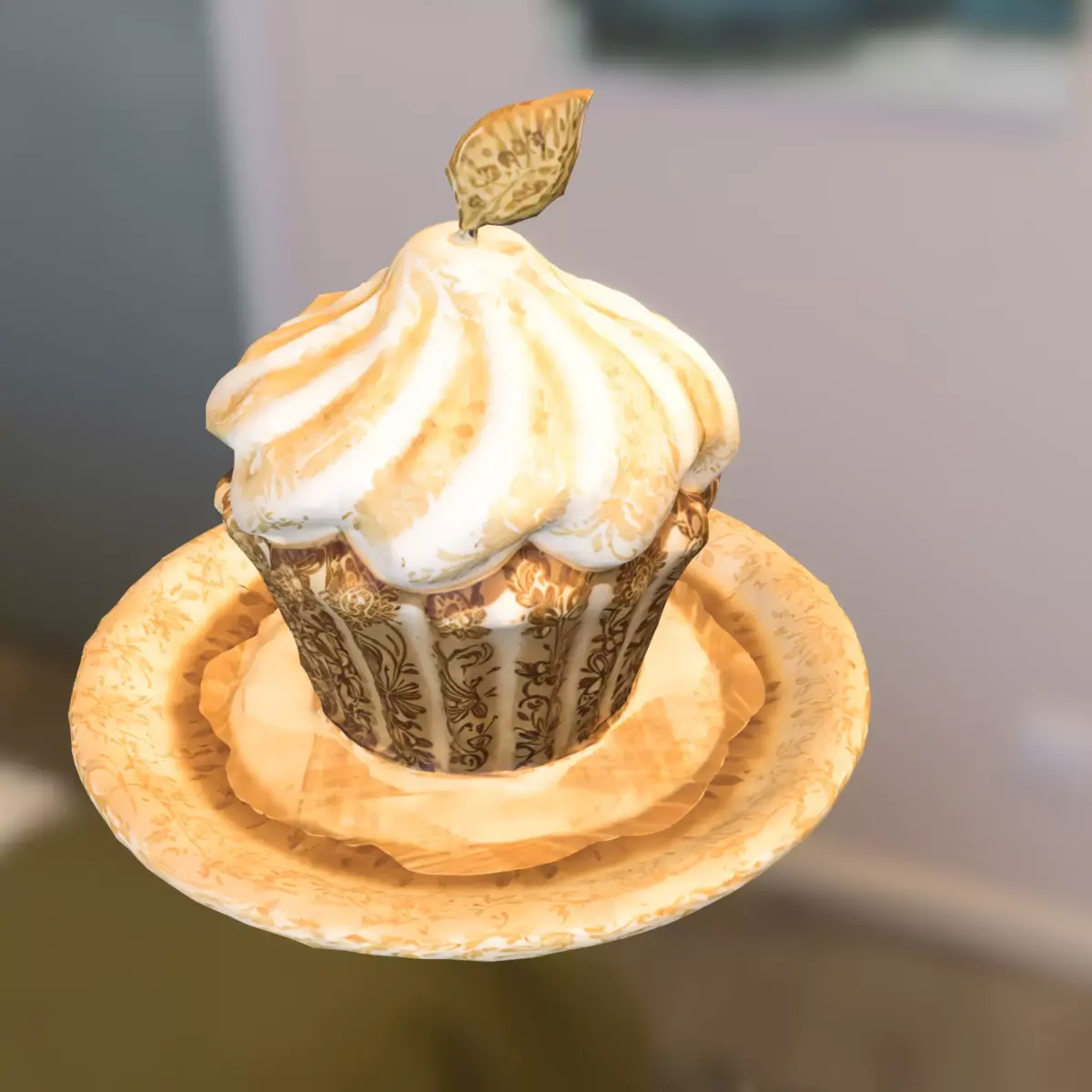 This Baroque Cupcake 3D model features a richly ornate cupcake design with golden floral detailing and swirled frosting, presented on an equally decorated plate. Ideal for use in fantasy, casual, cooking, or simulation games, this asset adds a touch of elegance and decadence to any virtual environment.
