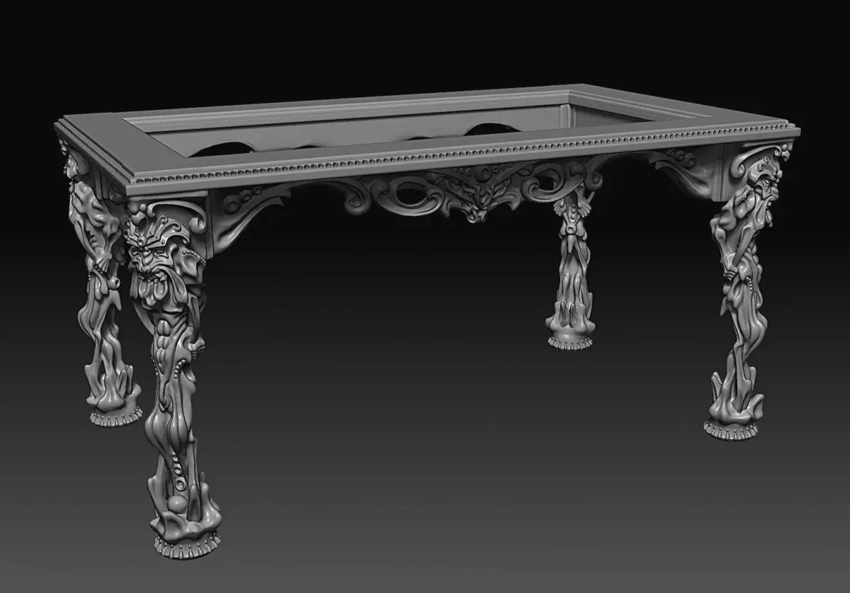 The Grandiose Baroque Table stands as the centerpiece, boasting intricate carvings and robust figurative legs that evoke a sense of ancient luxury and power.