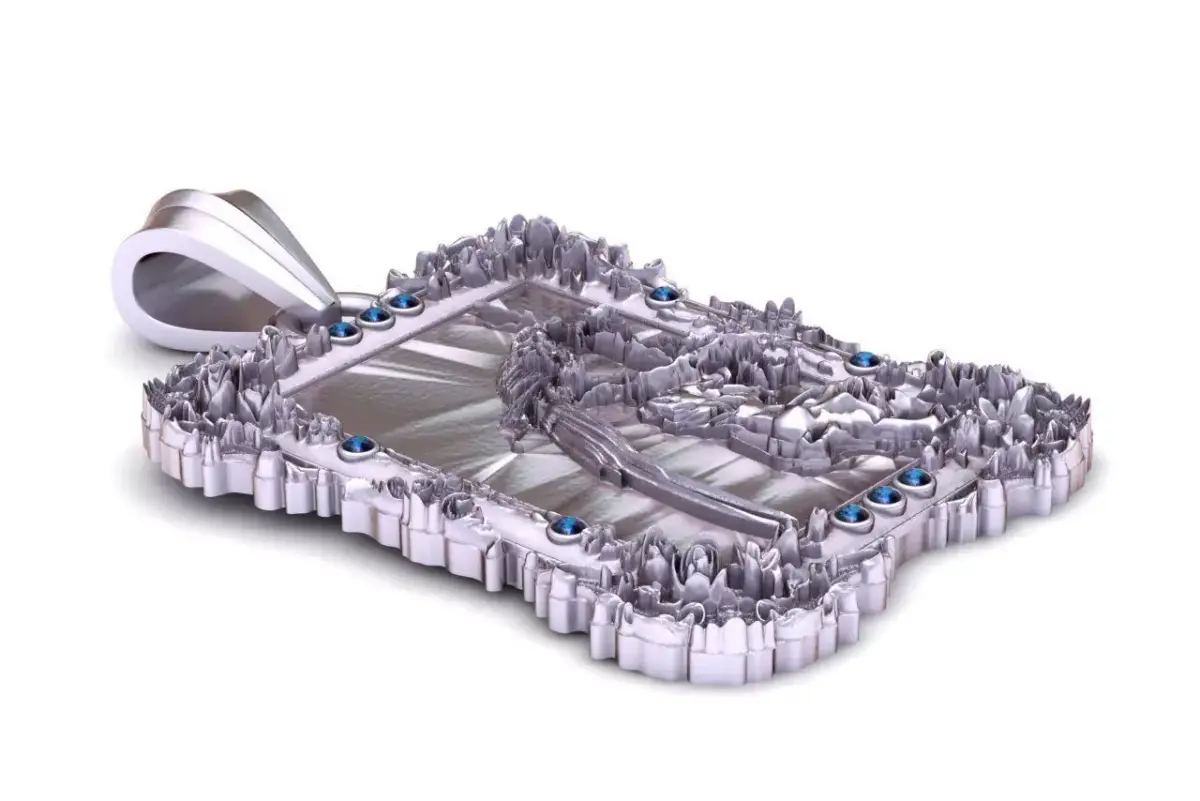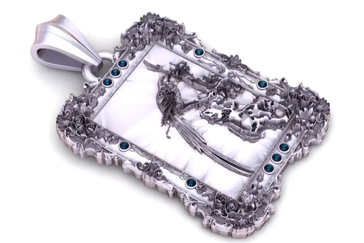 The Baroque Framed Angel Relief Pendant is an intricate 3D printable model featuring a detailed angel figure inside an ornate vintage-style frame. Decorative gemstones surround the frame, enhancing its royal and antique aesthetic.This design is ideal for collectors, religious jewelry, or high-end artistic pendants.