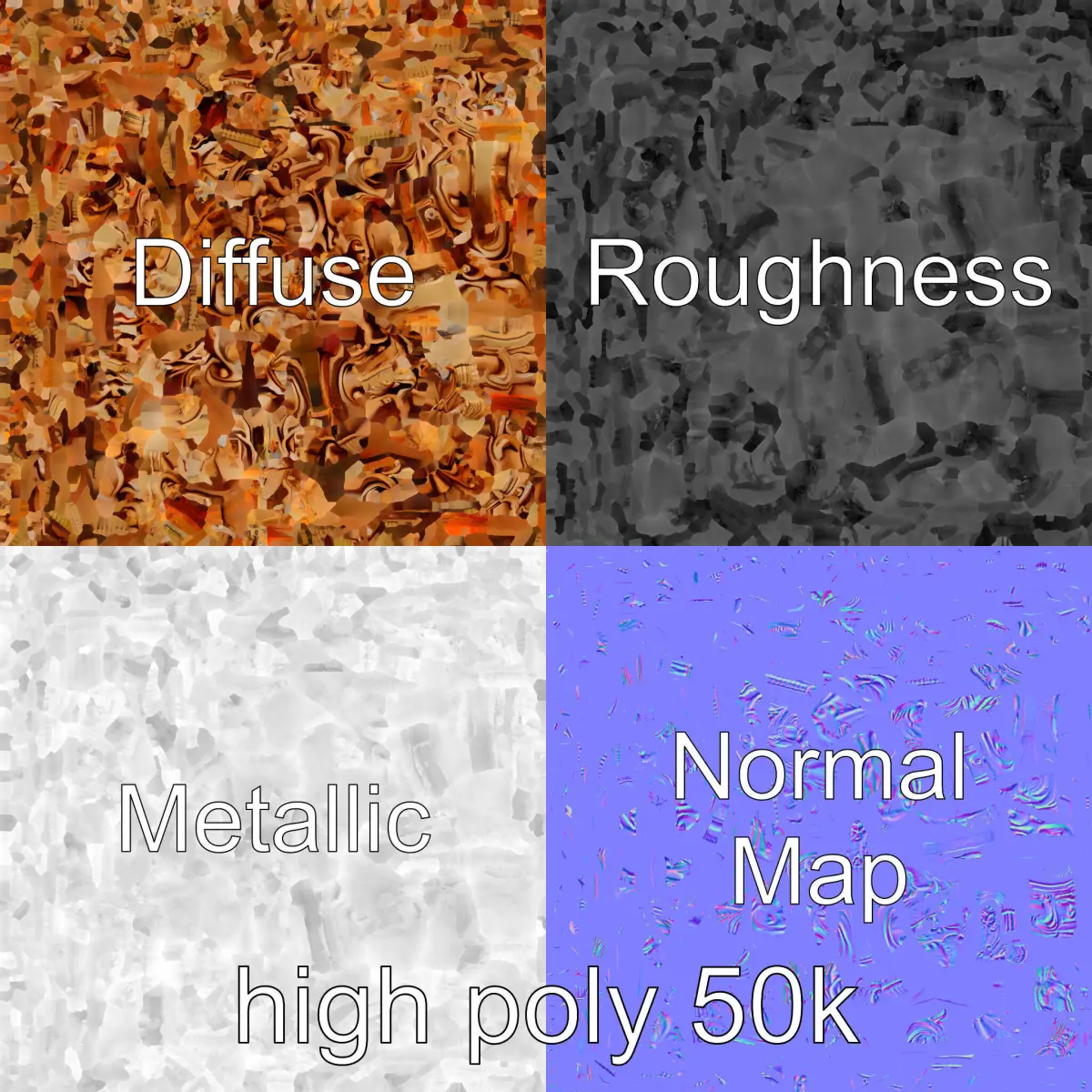 The model's textures are PBR, Diffuse, NormalMap, and reflection/roughness/metallic, which are suitable for any modern rendering engine. All models are accurately unwrapped with no overlapping UVs. All textures are 4096*4096 in size.