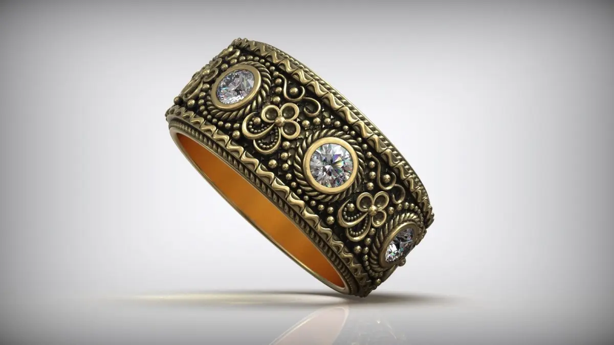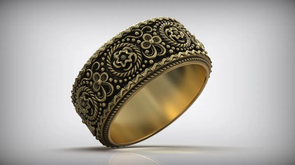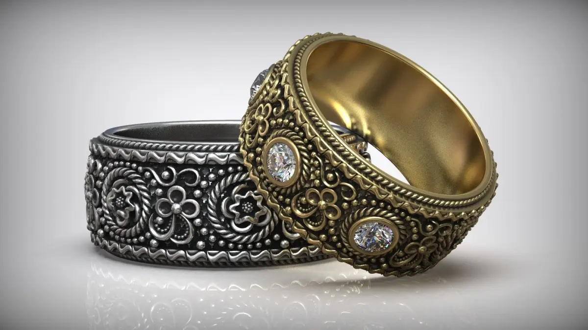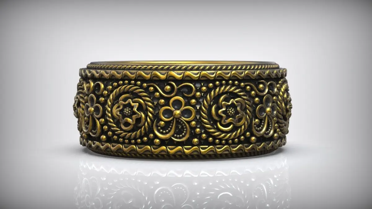 Floral Pattern Diamond Wedding Oxidized Band