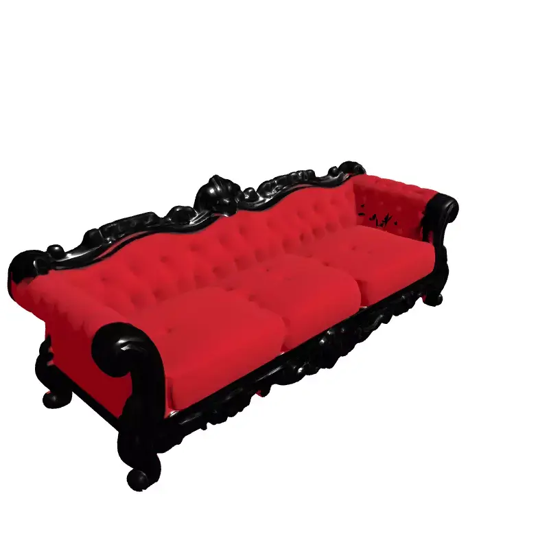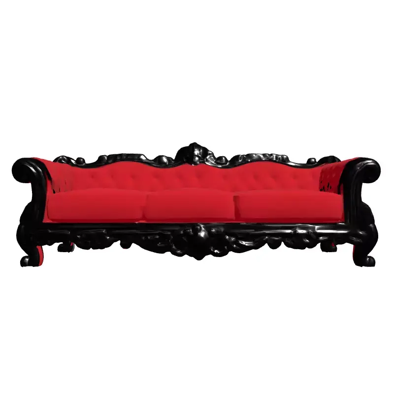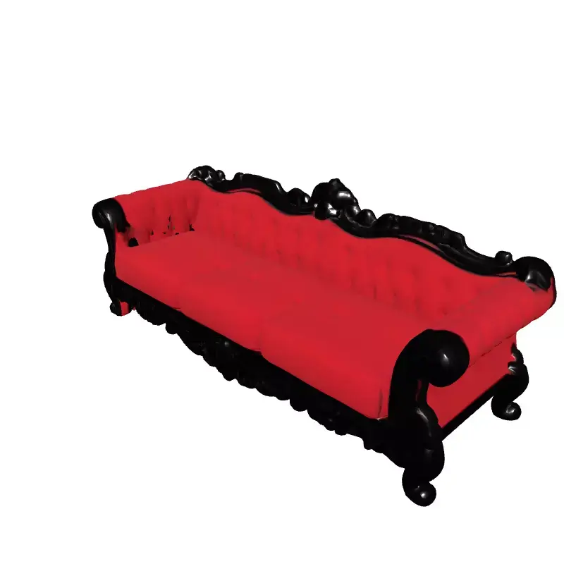 This exquisite 3D model represents a luxurious, ornate sofa, inspired by classic Baroque and Rococo design aesthetics. It features rich, crimson red velvet upholstery with intricate tufting, beautifully contrasted by a meticulously sculpted black wooden frame adorned with elaborate carvings and scrolls. This high-detail model is perfectly suited for a variety of demanding visual projects, including high-end architectural visualization, interior design renderings, virtual staging of luxury homes, and the creation of historically themed digital art or film scenes. Its elegant design also makes it ideal for showcasing upscale residential or commercial spaces, such as grand living rooms, hotel lobbies, or exclusive event venues. The model boasts clean topology and is ready for subdivision, ensuring smooth surfaces and exceptional detail when rendered up close. It is UV unwrapped and includes high-quality PBR (Physically Based Rendering) textures, guaranteeing a photorealistic appearance under various lighting conditions. While primarily optimized for static renderings, its clean structure can be adapted for real-time applications where detail is paramount. Common 3D file formats like GLB, OBJ, FBX, USD, DAE, and ABC are typically supported for seamless integration into most professional workflows.