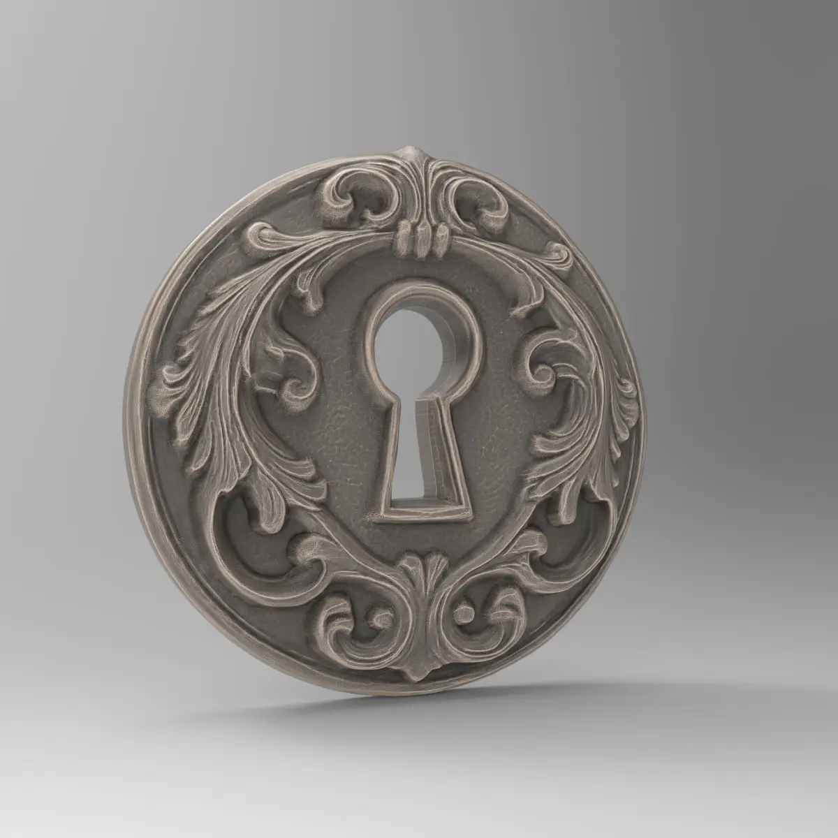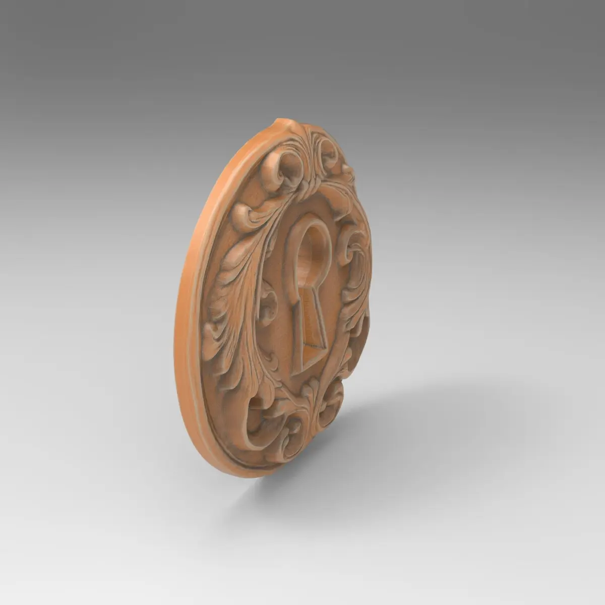 - Elegant Round Baroque Keyhole Escutcheon 3D Model: Perfect for adding a vintage touch to doors, drawers, or furniture.
