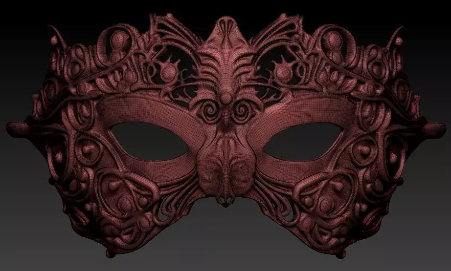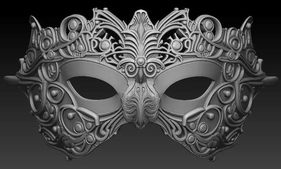 This masquerade mask features an intricate baroque filigree design with layered metal-style ornamentation and a bold symmetrical form. The open scrollwork, raised central crest, and flowing curves give this model a strong royal and renaissance character, making it ideal for masquerade balls, theater productions, cosplay, carnival events, and decorative wall display.