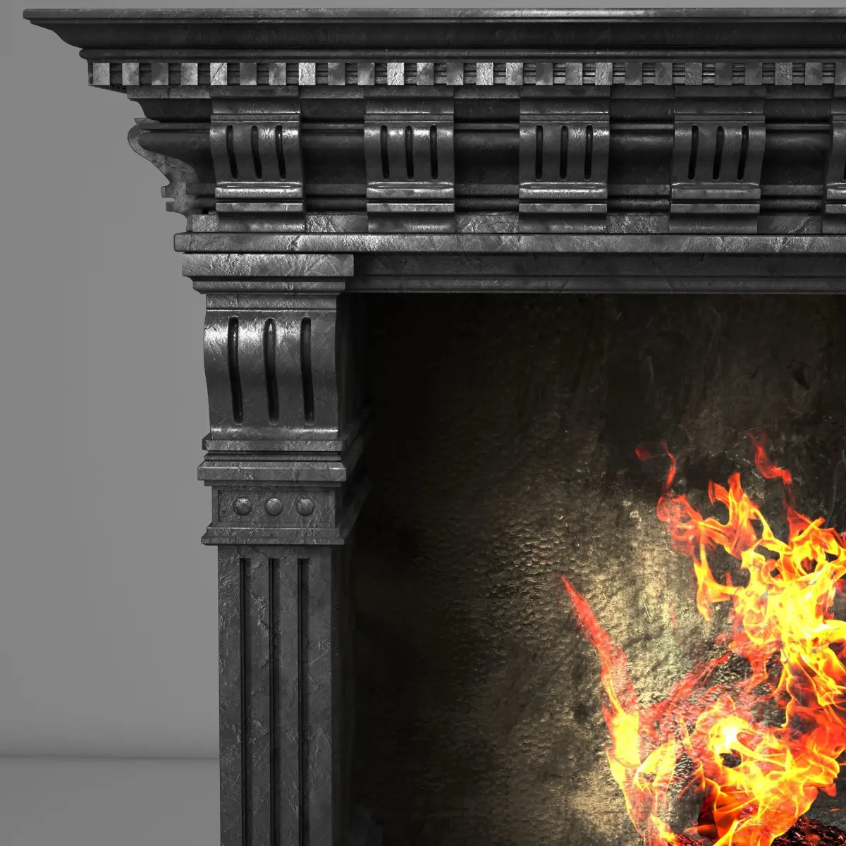 A large and stately Baroque style antique chimneypiece in polished Belgian Blue Fossil Stone. The heavily moulded dentil shelf and corbelled frieze is supportedby a pair of generous fluted corbels above fluted jambs which rest on substantial footblocks. Belgian circa 1870.