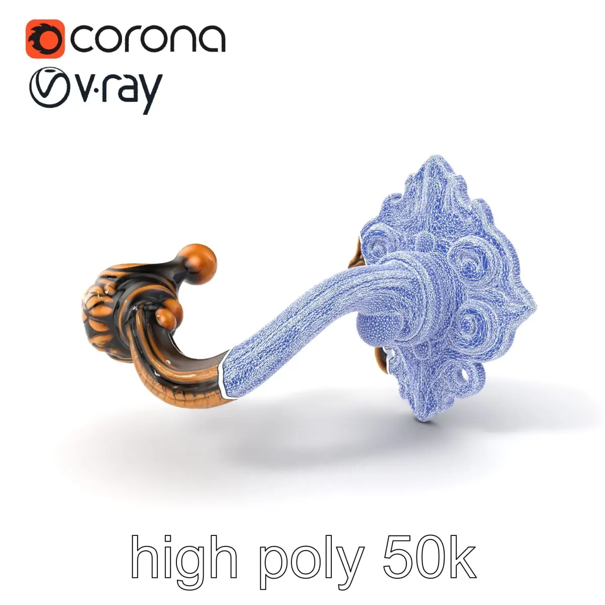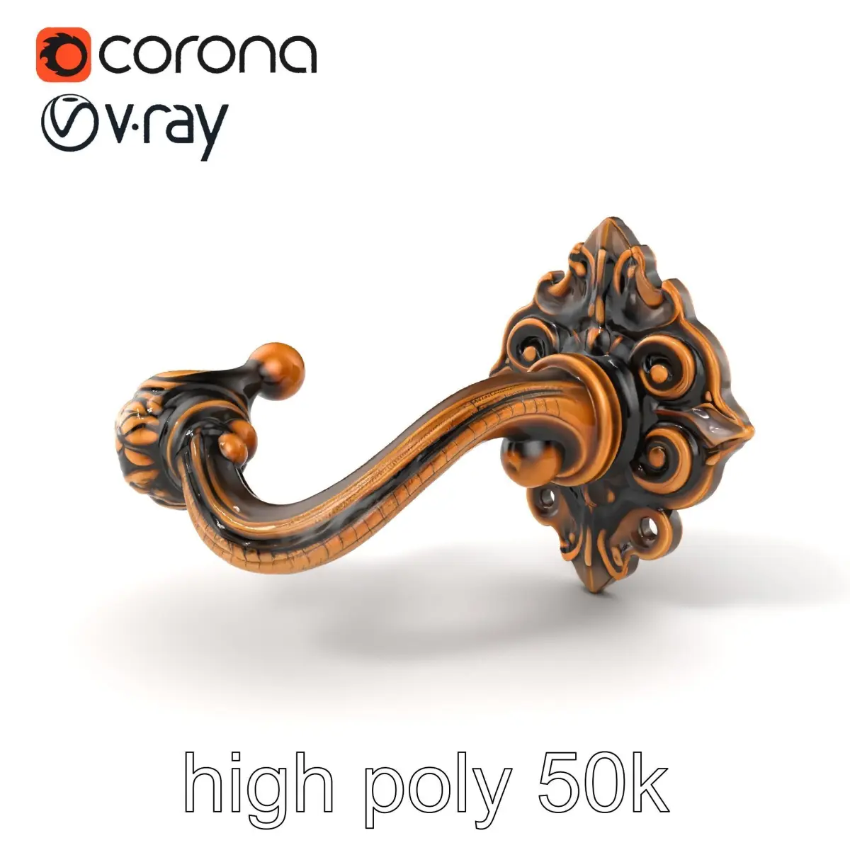 This Baroque Style Ornate Door Handle is perfect for architectural visualization, historical set design, and antique collections. The elegant scrolls and curves with natural patina create a realistic and sophisticated antique appearance.