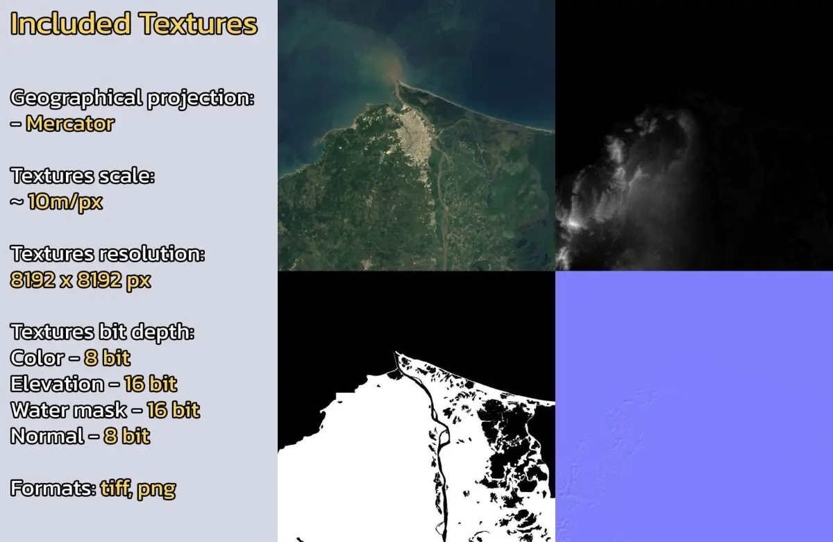 - Textures resolution: ~10m/px