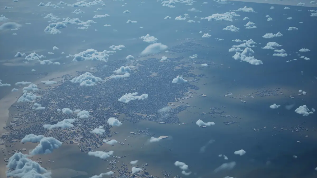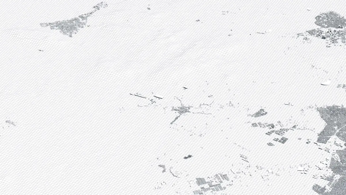Originally created in Houdini 19. Final images rendered in Houdini. Data source is ASTER GDEM V3, ASTER WATER V1, Open Streep Maps 2022, Copernicus Sentinel 2016.