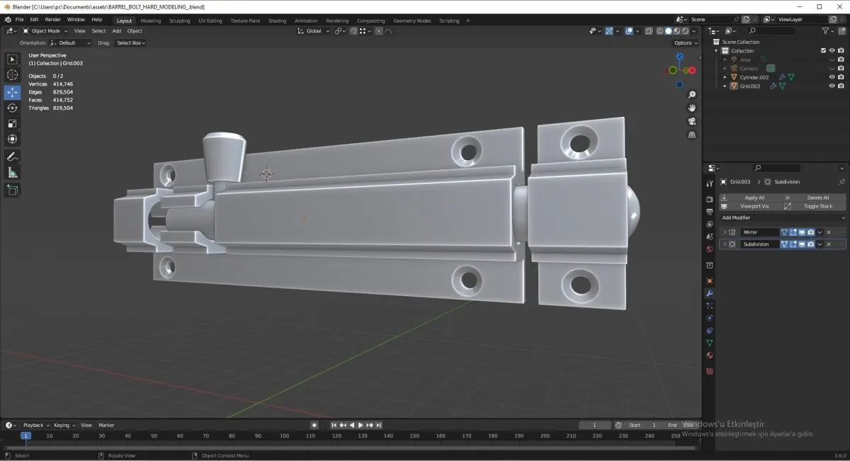 Barrel BoltObjects:0/2Vercites:414,746Edges:829,504Faces:414,752Triangles:829,504