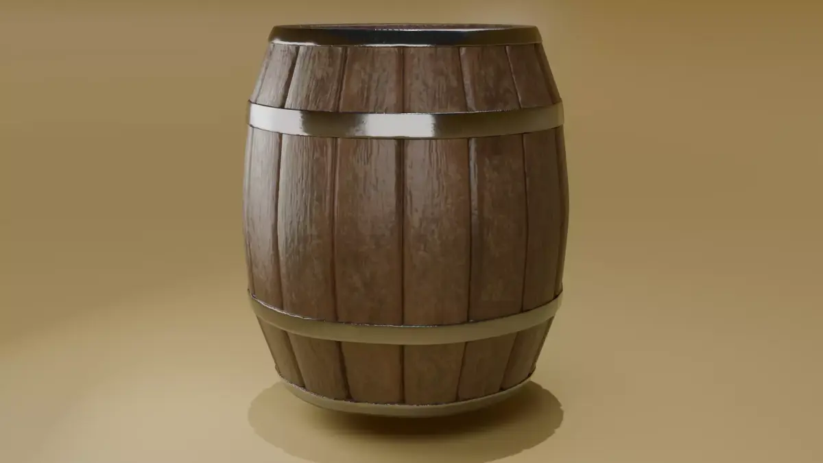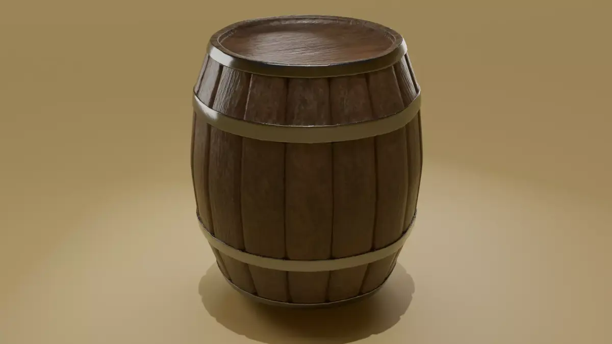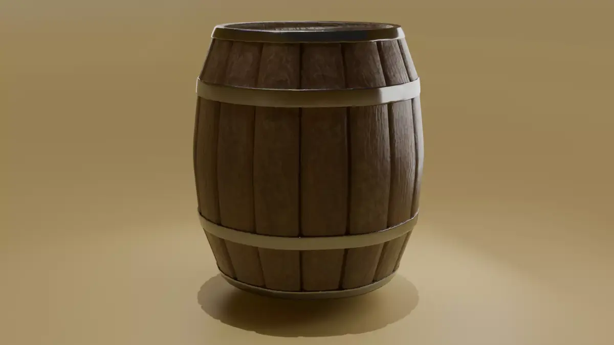 The barrel features a classic cylindrical shape reinforced with wooden planks and metal bands, giving it an authentic, handcrafted look. Its realistic proportions make it suitable for medieval, fantasy, pirate, or even modern industrial settings. The textures are created in high resolution with baked maps to ensure sharp details while keeping the file size optimized.