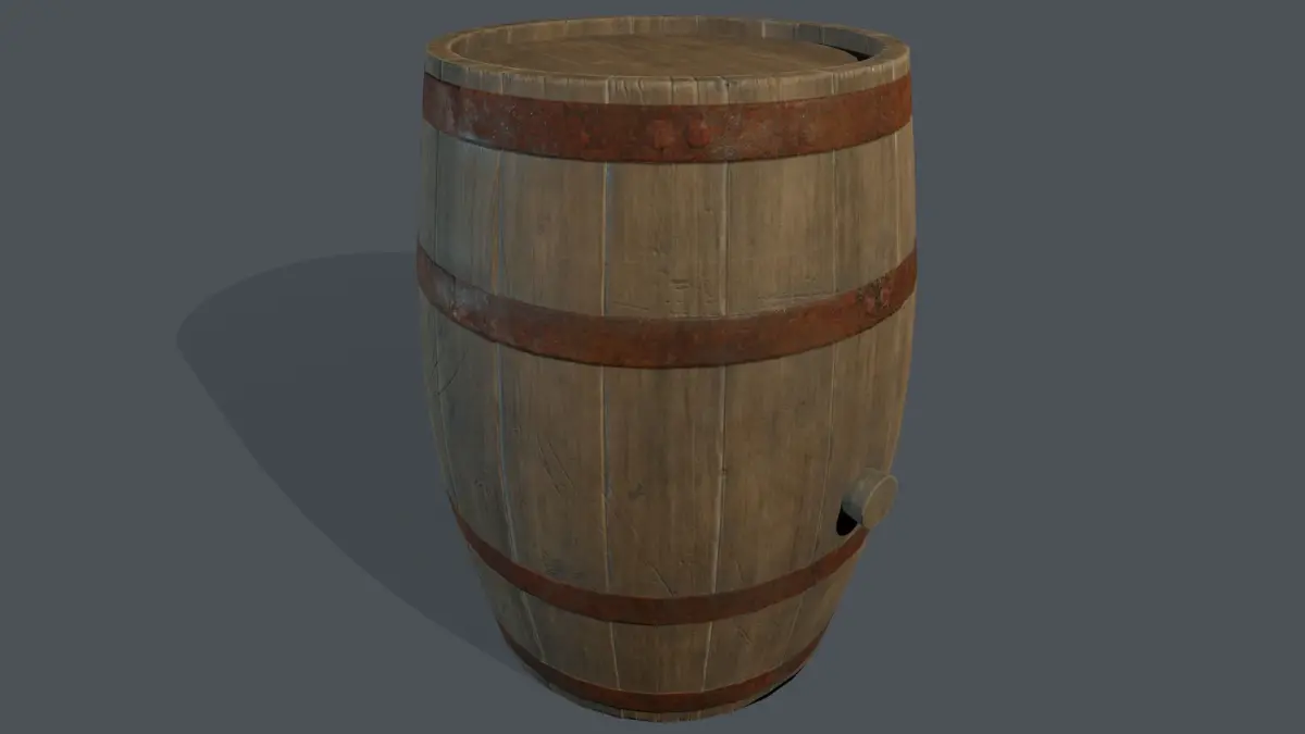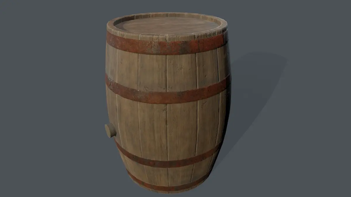 This is a wooden barrel in a medieval style, well-suited for various projects. It can be used to hold both water and wine. The design is executed realistically. I would appreciate feedback in the comments.