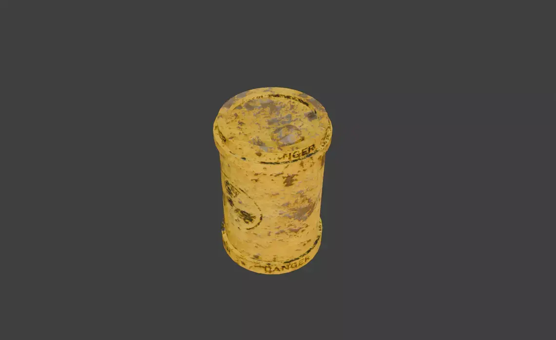 This 3D model represents a barrel of nuclear waste. The barrel has a cylindrical shape with reinforced edges at the top and bottom. Its surface is painted in a worn, dirty yellow color, symbolizing danger and caution. On the front side, there is a faded radiation hazard symbol, indicating that the contents are toxic and radioactive. Additionally, the word “DANGER” is written in black at both the top and bottom rims of the barrel. The texture is weathered and rusted, giving it an old and abandoned look, perfect for use in post-apocalyptic scenes, industrial environments, or video games that require hazardous objects.The model can be used in your 3D scenes or games, the textures are baked and ready to use in games.The file itself will not contain scenes from the render. I apologize for this and warn you in advance.Since I made the model for free use, I would ask you to write about its problems and shortcomings.