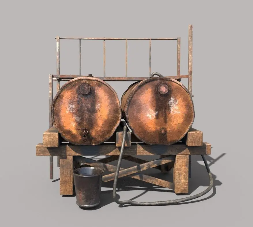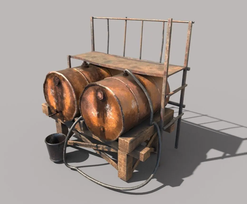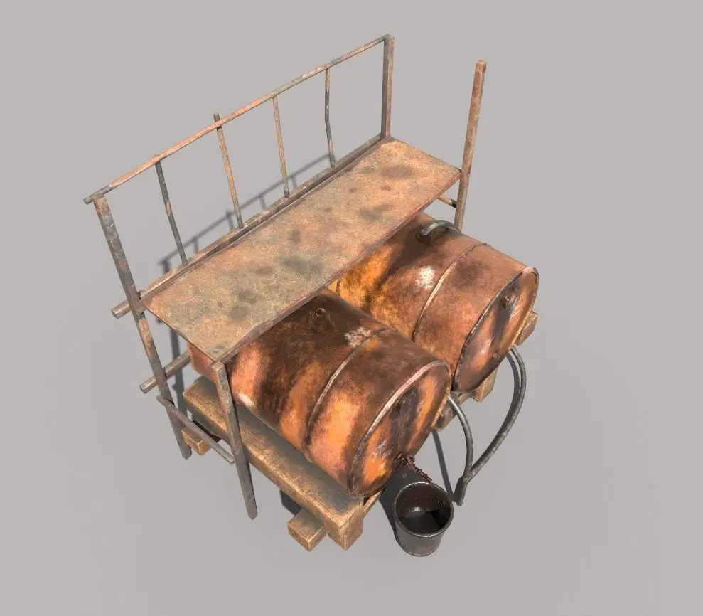 Model of barrel oil platform.Model has 3 PBR material.Maps are diffuse-specular-glossiness-height and normal. Model's textures has two sizes; 4096x4096-2048x2048. All maps are PNG formats and unwrapped-non-overlapping.