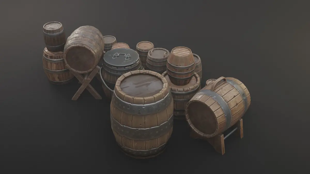 Low poly Barrel pack high quality 1024x1024 game ready pbr textures