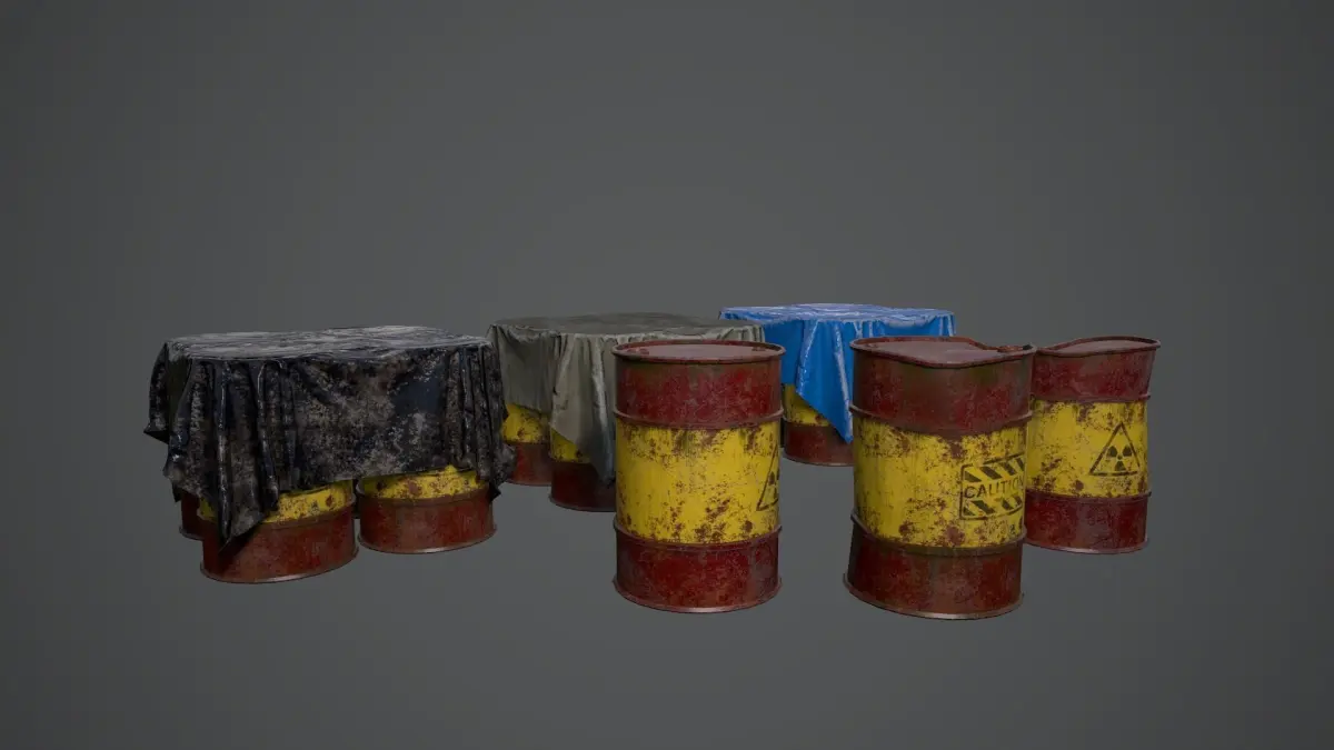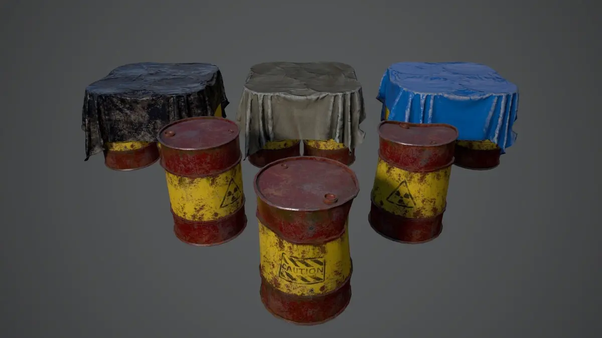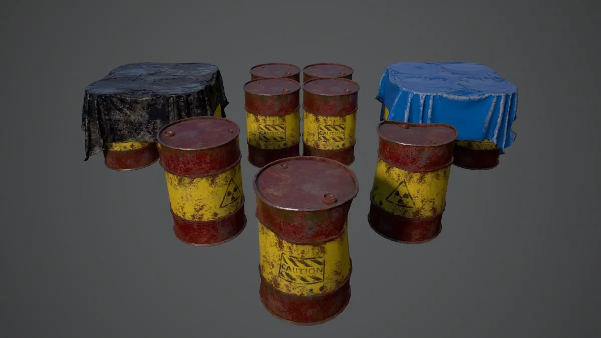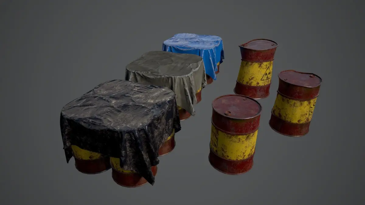 4 Different Oil Barrels + 3 different nylon cover PBR Game Ready 3d Low Poly