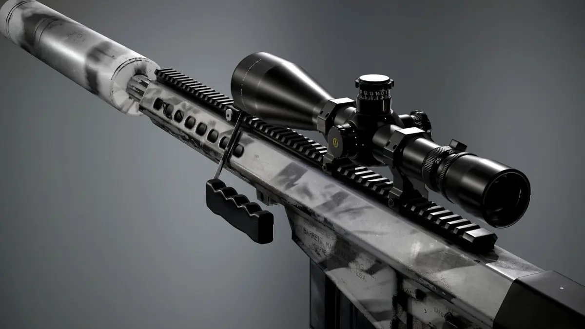 You can get the rifle with suppressor and scope here: https://www.cgtrader.com/3d-models/military/gun/barret-m82a1