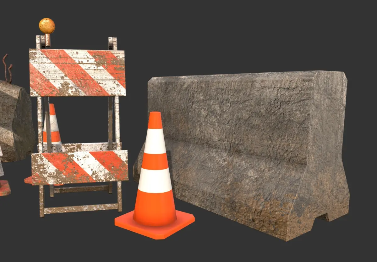 Concrete divider: dirty, damaged