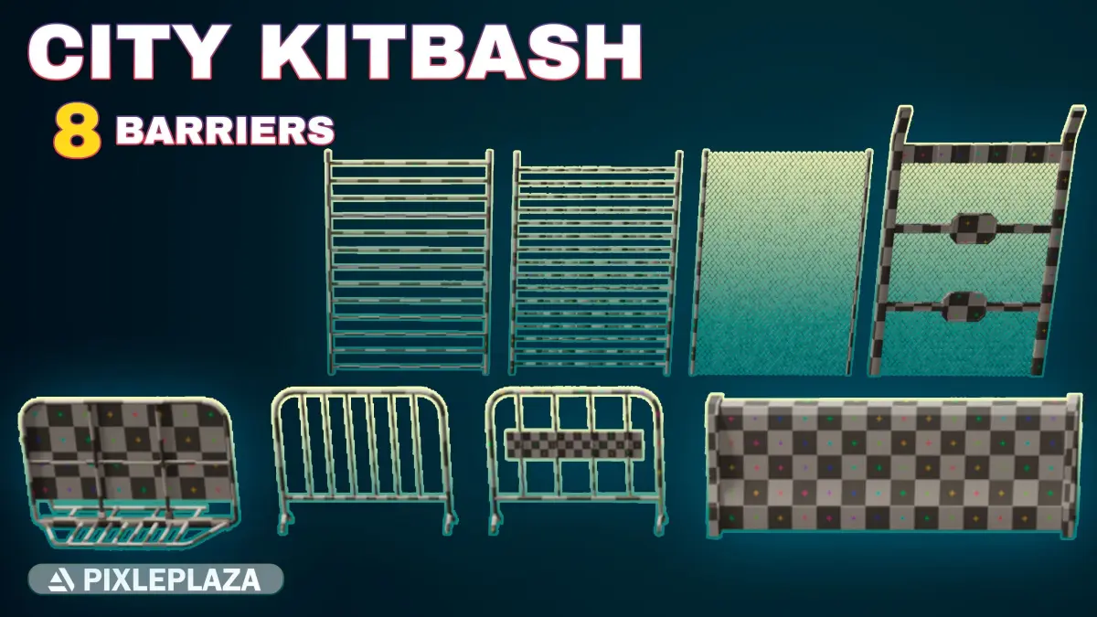 low poly game ready assets8 barriers and fence all 8 models have clean UV and Topology and made with careready to use in games and movies realistic or sci-fi cyberpunk gmaes