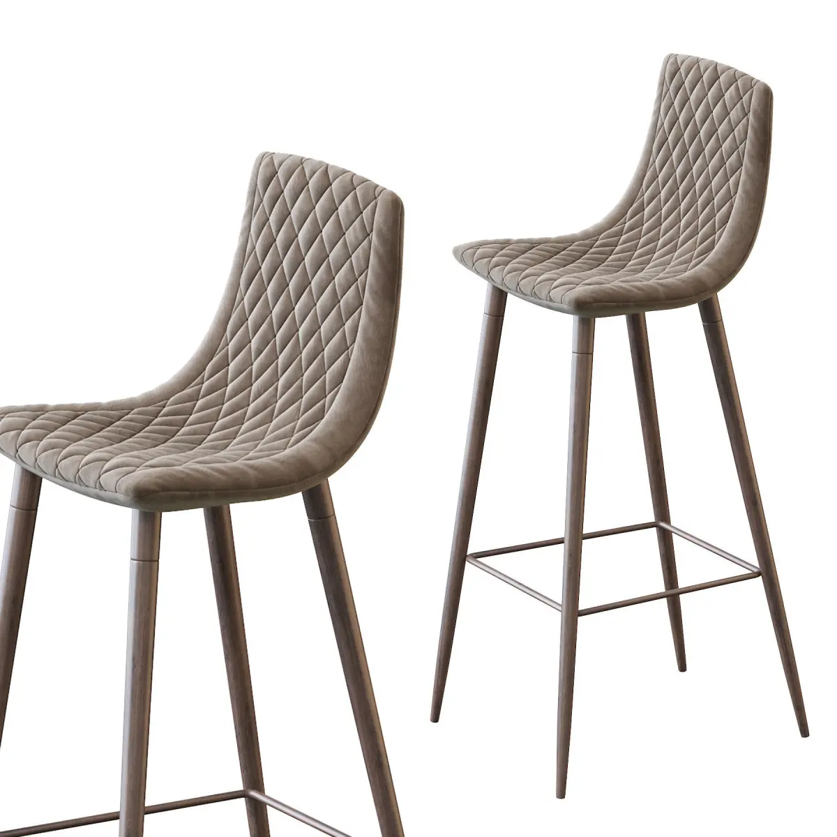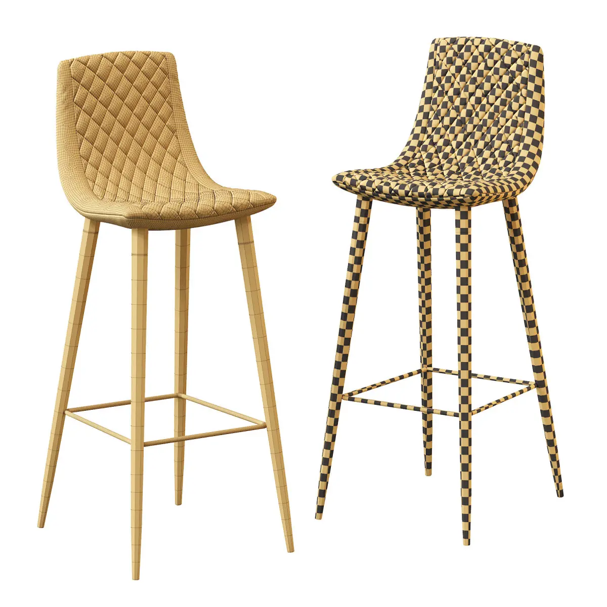 There are many different types, construction materials and models. Bar stools are often made of wood or metal. There are bar stools with and without armrests, backs, and padding or upholstery on the seat surface. Bar stools can range from basic wooden designs to more complex ones with adjustable height. Extra tall and extra short are common features, as well as indoor bar stools and outdoor bar stools. Some bar stools have backs, while most do not. In commercial settings, swivel and floor mounted bar stools are common. Floor mounting renders the stool immovable, so it cannot be stolen or used as a weapon in a bar fight. Floor-mounted stools generally are mounted on a column, but stools with legs can also be secured to the floor using metal brackets.