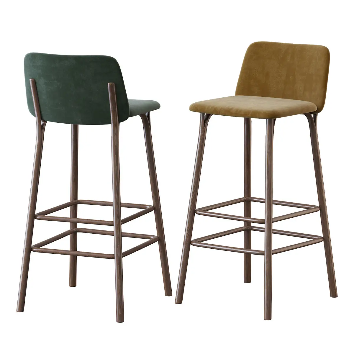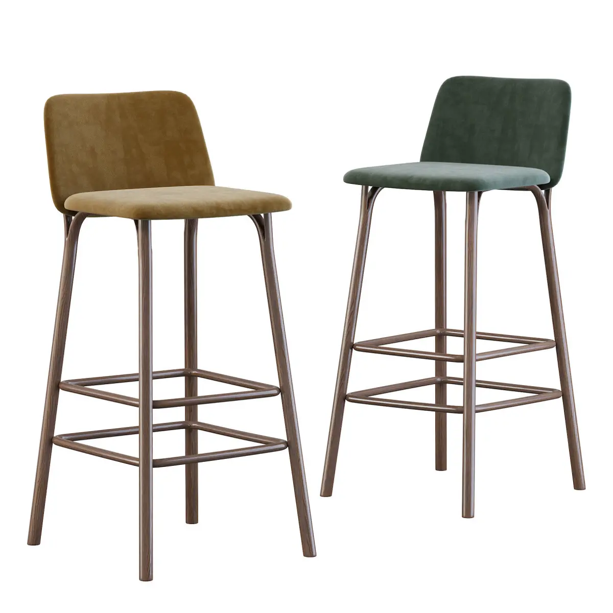 There are many different types, construction materials and models. Bar stools are often made of wood or metal. There are bar stools with and without armrests, backs, and padding or upholstery on the seat surface. Bar stools can range from basic wooden designs to more complex ones with adjustable height. Extra tall and extra short are common features, as well as indoor bar stools and outdoor bar stools. Some bar stools have backs, while most do not. In commercial settings, swivel and floor mounted bar stools are common. Floor mounting renders the stool immovable, so it cannot be stolen or used as a weapon in a bar fight. Floor-mounted stools generally are mounted on a column, but stools with legs can also be secured to the floor using metal brackets.