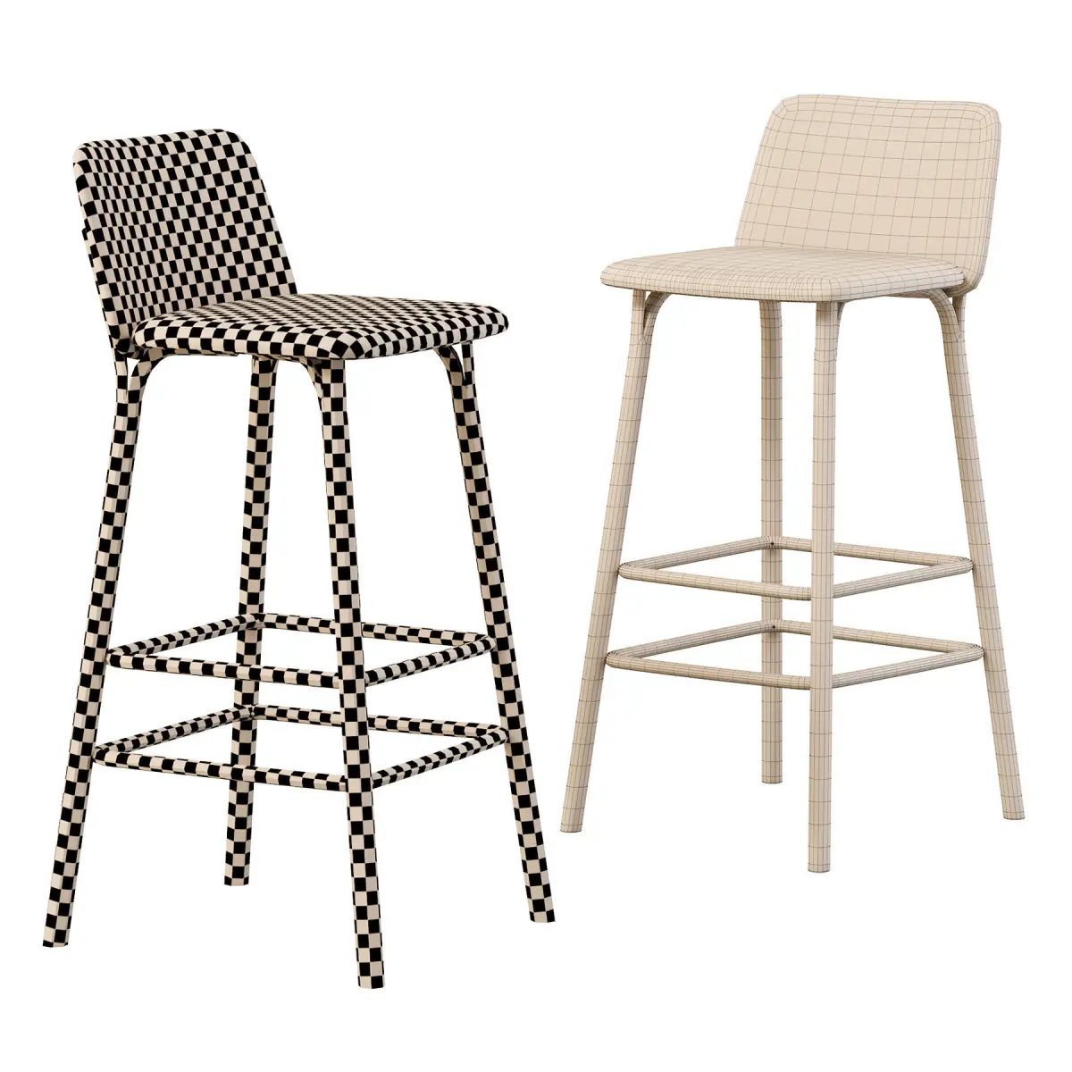 The Split barstool is based on the shapes of a chair, but its lower parts are connected with bent joints. This provides a comfortable rest for the feet while sitting. It is offered in two height variants that can be used in restaurants – as well as in private kitchens.