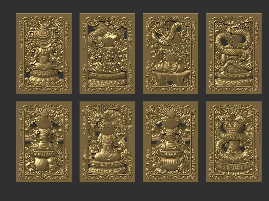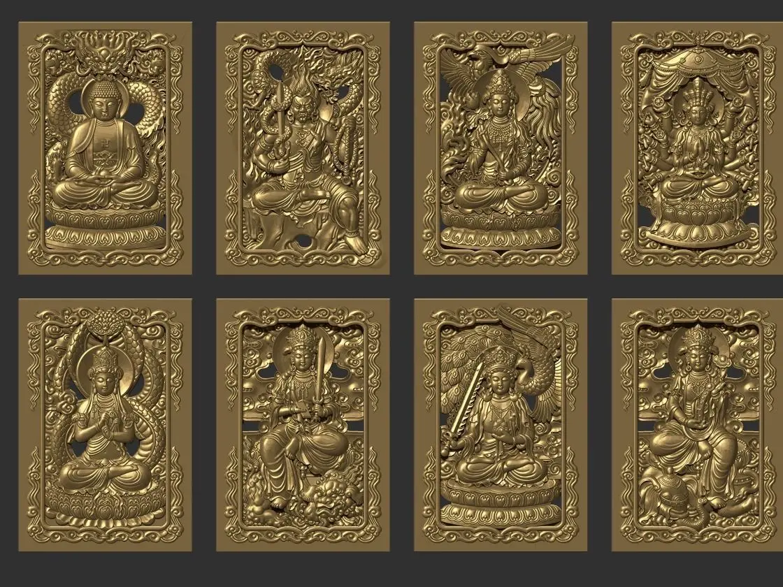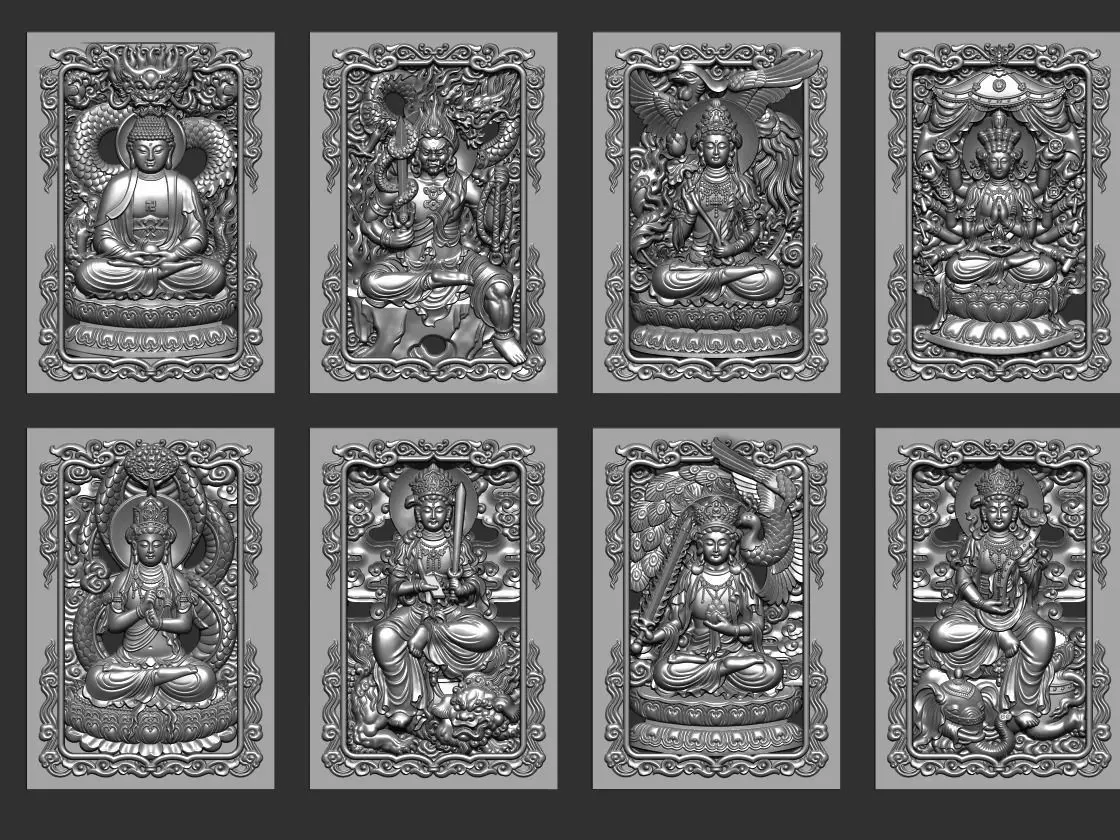 3d models of Eight Buddhas ready for CNC Router Caving or 3d printer.OBJ,STL format.