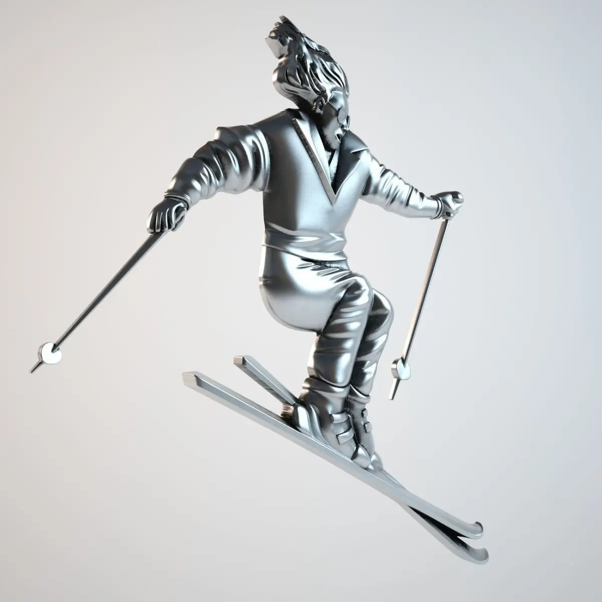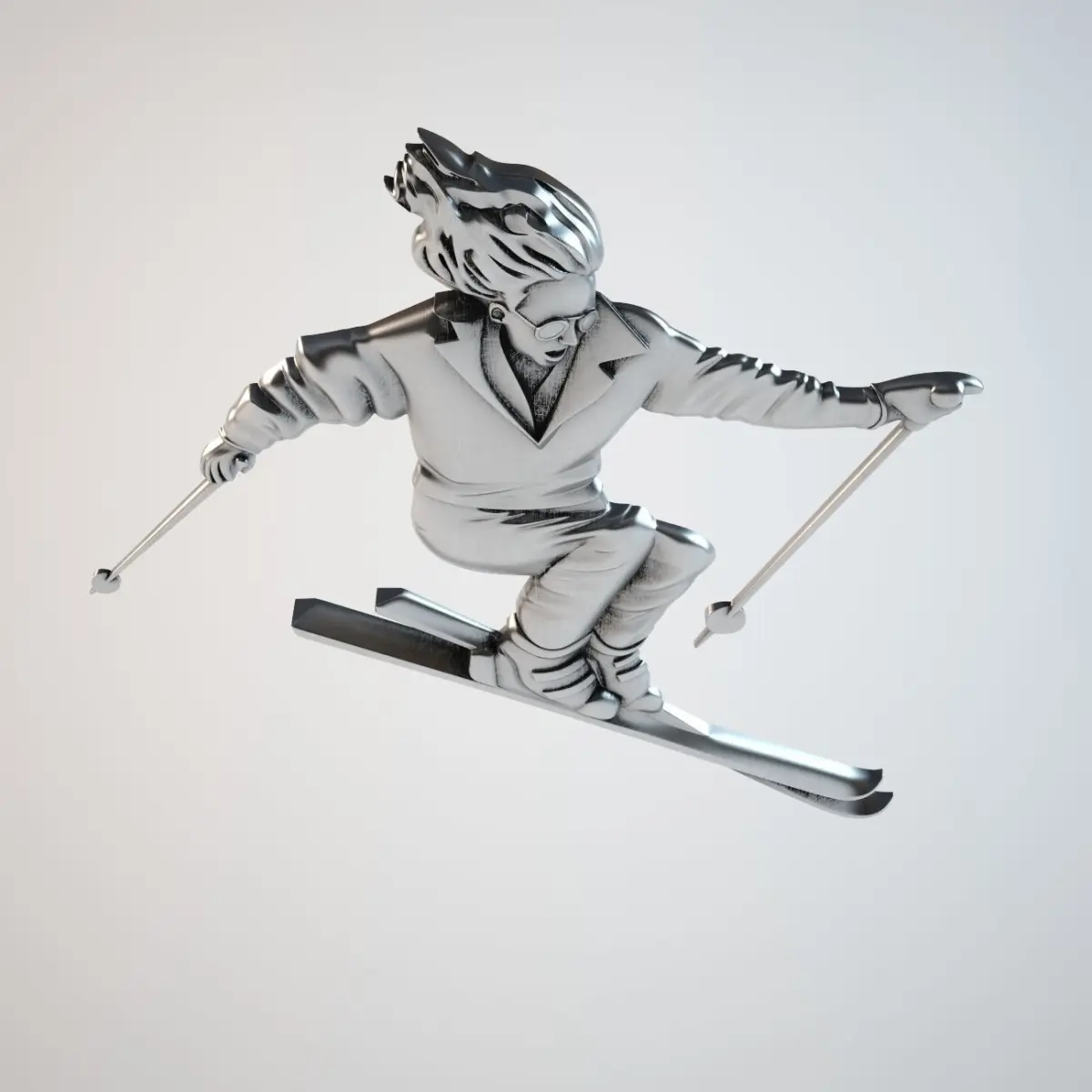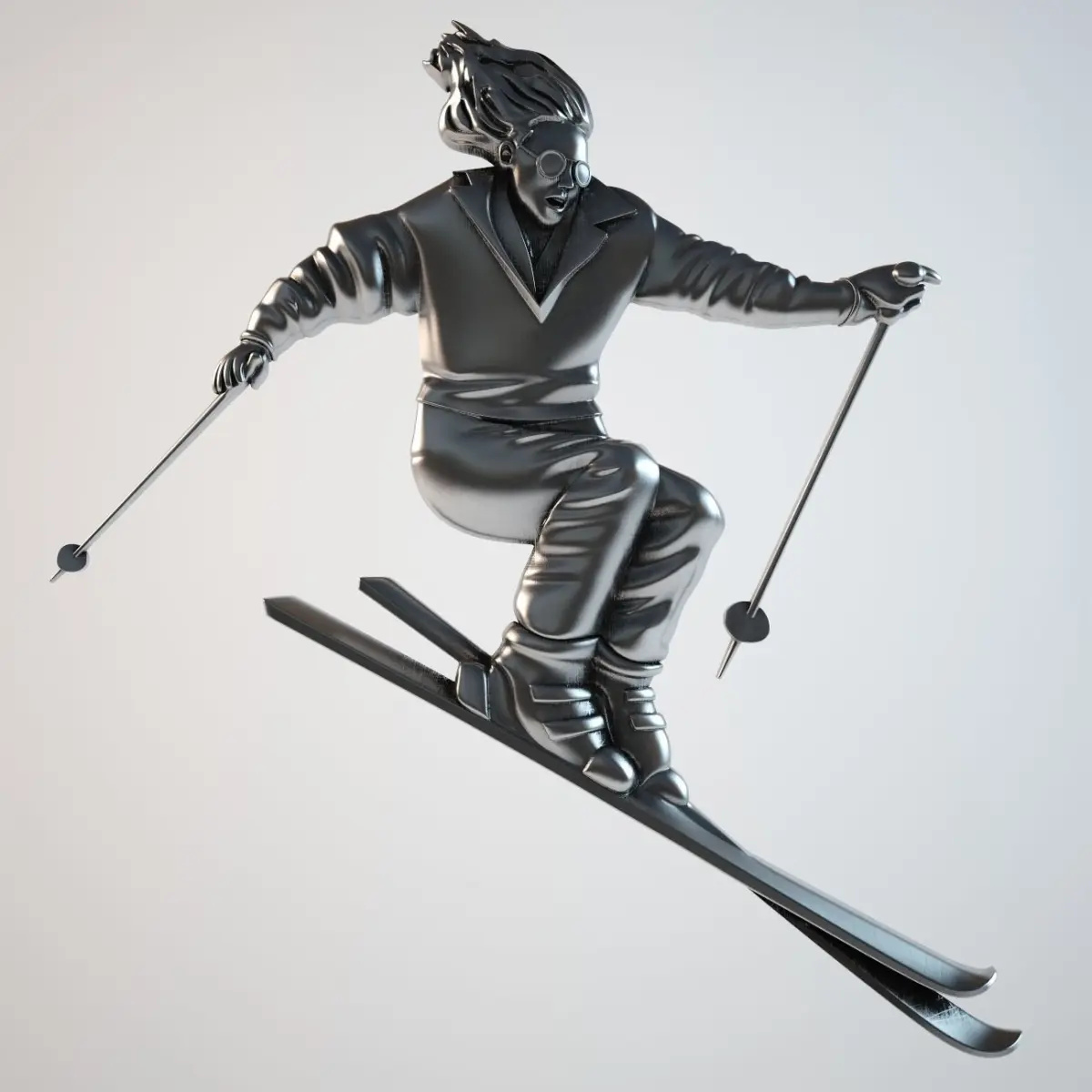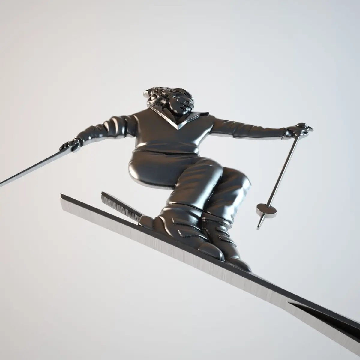 High polygonal model bas skier made for CNC machines and 3D printing. Modifiers smoothing stored for easy editing model.