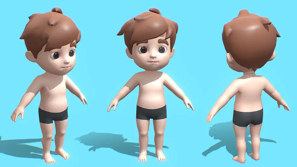 - Base Mesh: Cartoon Boy Kid with rigger and UV ( 6,5k tris )