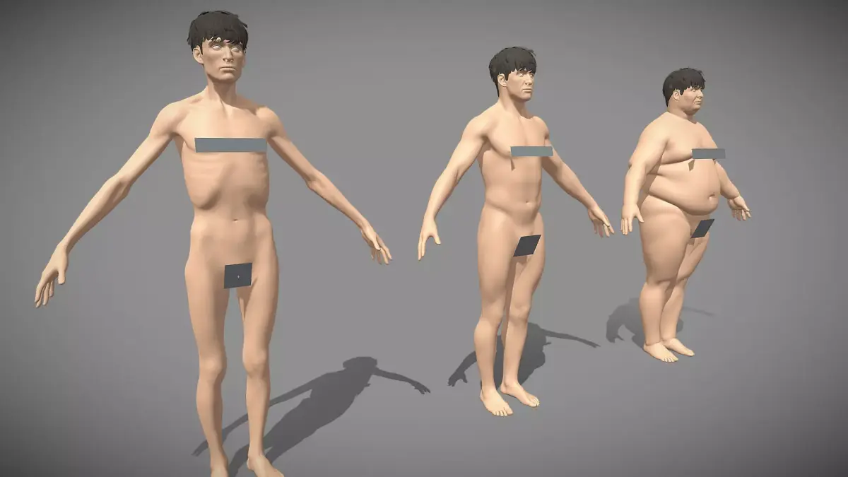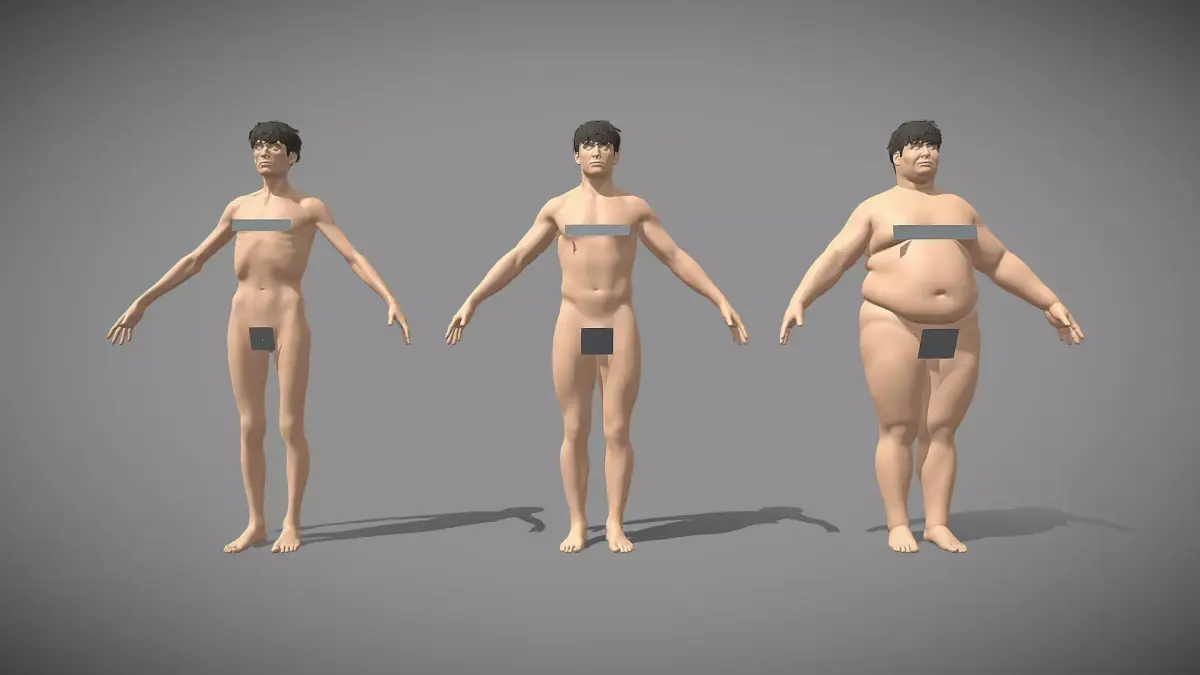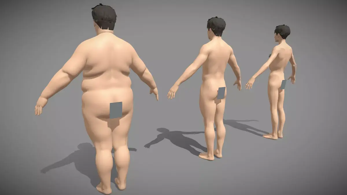 *Introducing to everyone a set of women's and man base mesh with 3 body states (Normal, fat, thin). Detailed models suitable for projects for games, movies, sculptures...