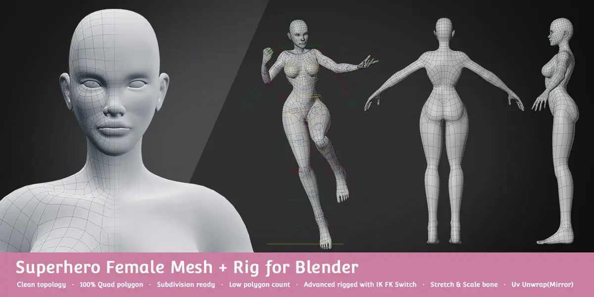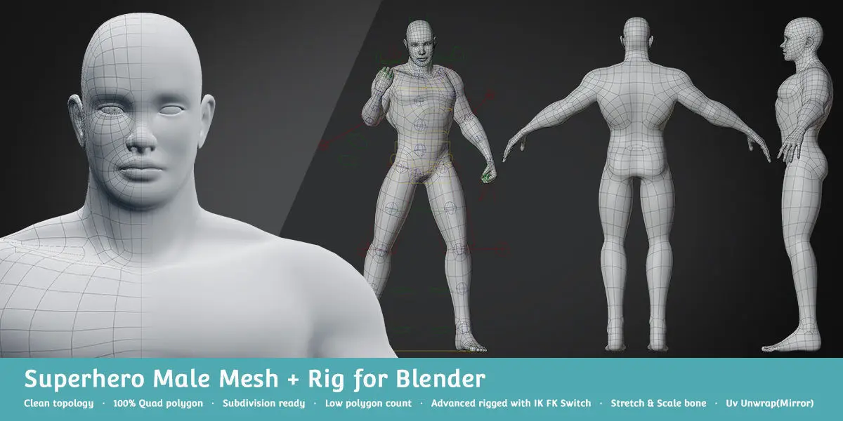 Includes 23 the most basic character meshes set and advanced rigged for Blender to help increase your productivity! A good base mesh allows you to save time with good proportions, clean topology and clean paint weight.