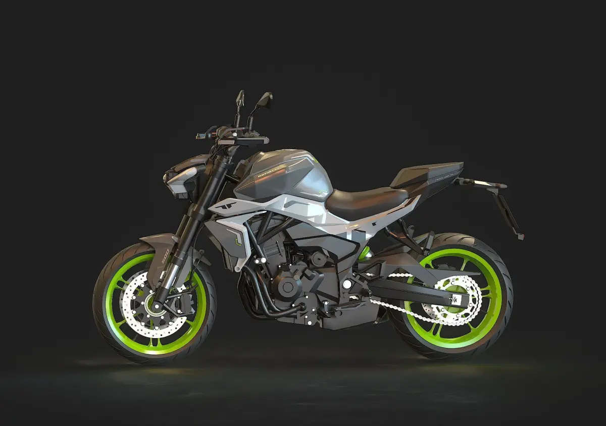 • Detailed Base Mesh: Includes essential components such as frame, engine block, wheels, suspension, handlebars, seat, and basic fairings, providing a solid starting point for customization.