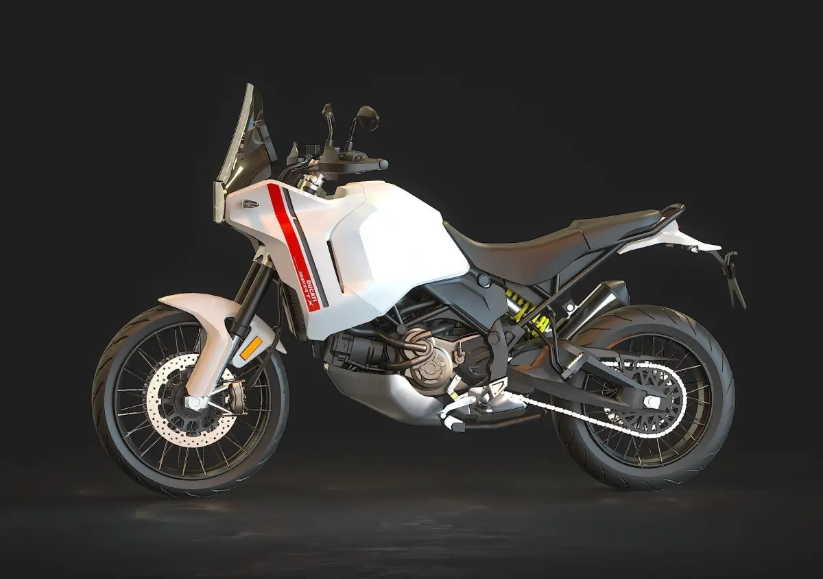 • Detailed Base Mesh: Includes essential components such as frame, engine block, wheels, suspension, handlebars, seat, and basic fairings, providing a solid starting point for customization.