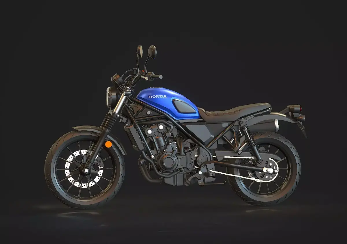• Detailed Base Mesh: Includes essential components such as frame, engine block, wheels, suspension, handlebars, seat, and basic fairings, providing a solid starting point for customization.