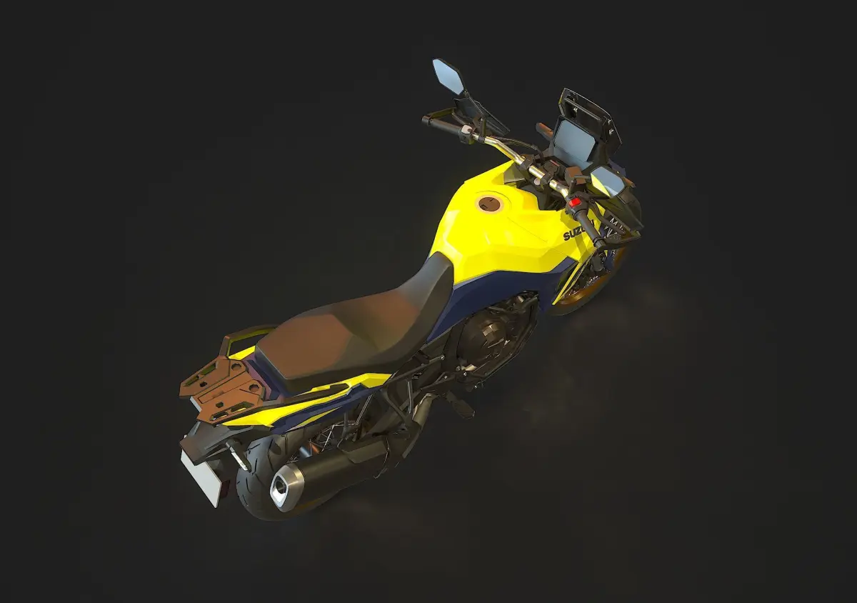 • Detailed Base Mesh: Includes essential components such as frame, engine block, wheels, suspension, handlebars, seat, and basic fairings, providing a solid starting point for customization.