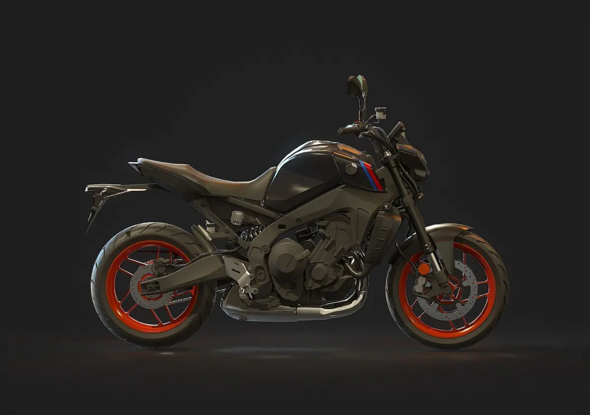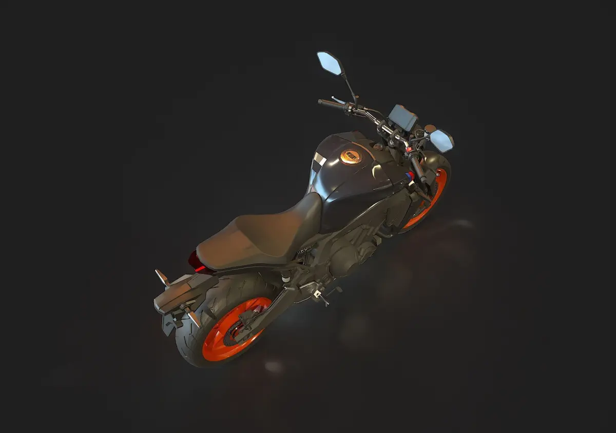 • Detailed Base Mesh: Includes essential components such as frame, engine block, wheels, suspension, handlebars, seat, and basic fairings, providing a solid starting point for customization.