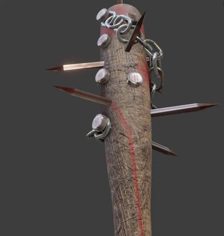 The 3d model of this baseball bat is so smooth good for games equipments contain wih nice and clean geometry i have also painted some textures on some material like blood spllaters on nails chain and bat you can find these texture paint uv image in texture folder Thanks :)