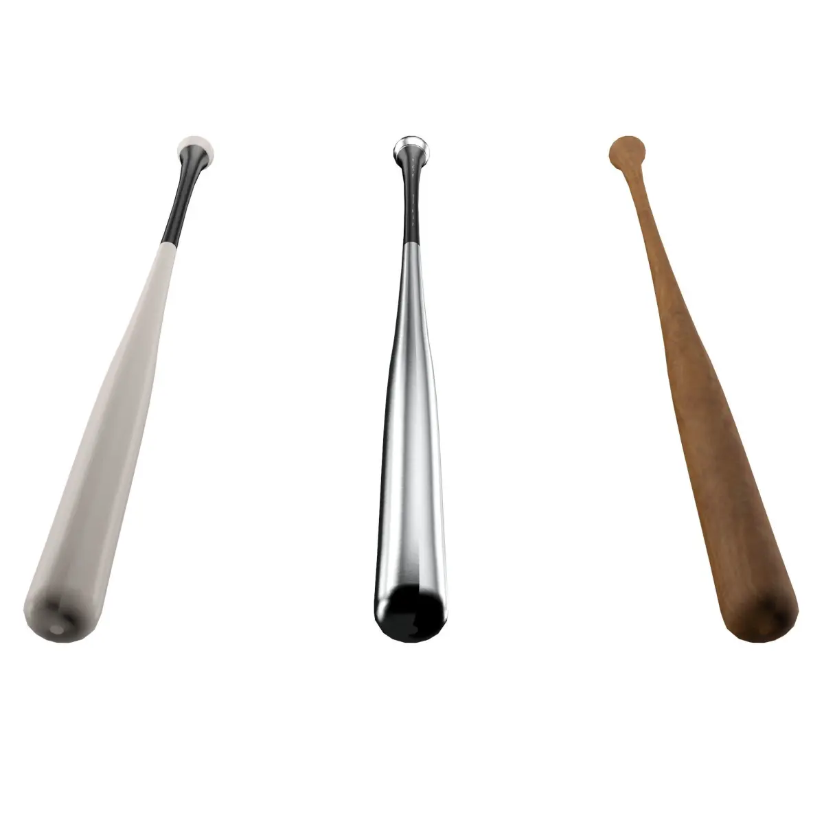 Three baseball bats models Low Poly with High-Quality PBR textures with Basee Color, Metallic, Roughness, Height, AO, Normal maps in 4096x4096 size.