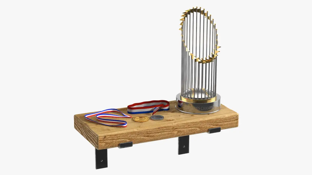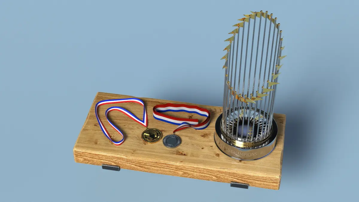 Baseball Champion Trophy and Medals Display is a three-dimensional model of Commissioner's Trophy (MLB), that is the Major League Baseball's championship trophy awarded annually to the World Series winner.