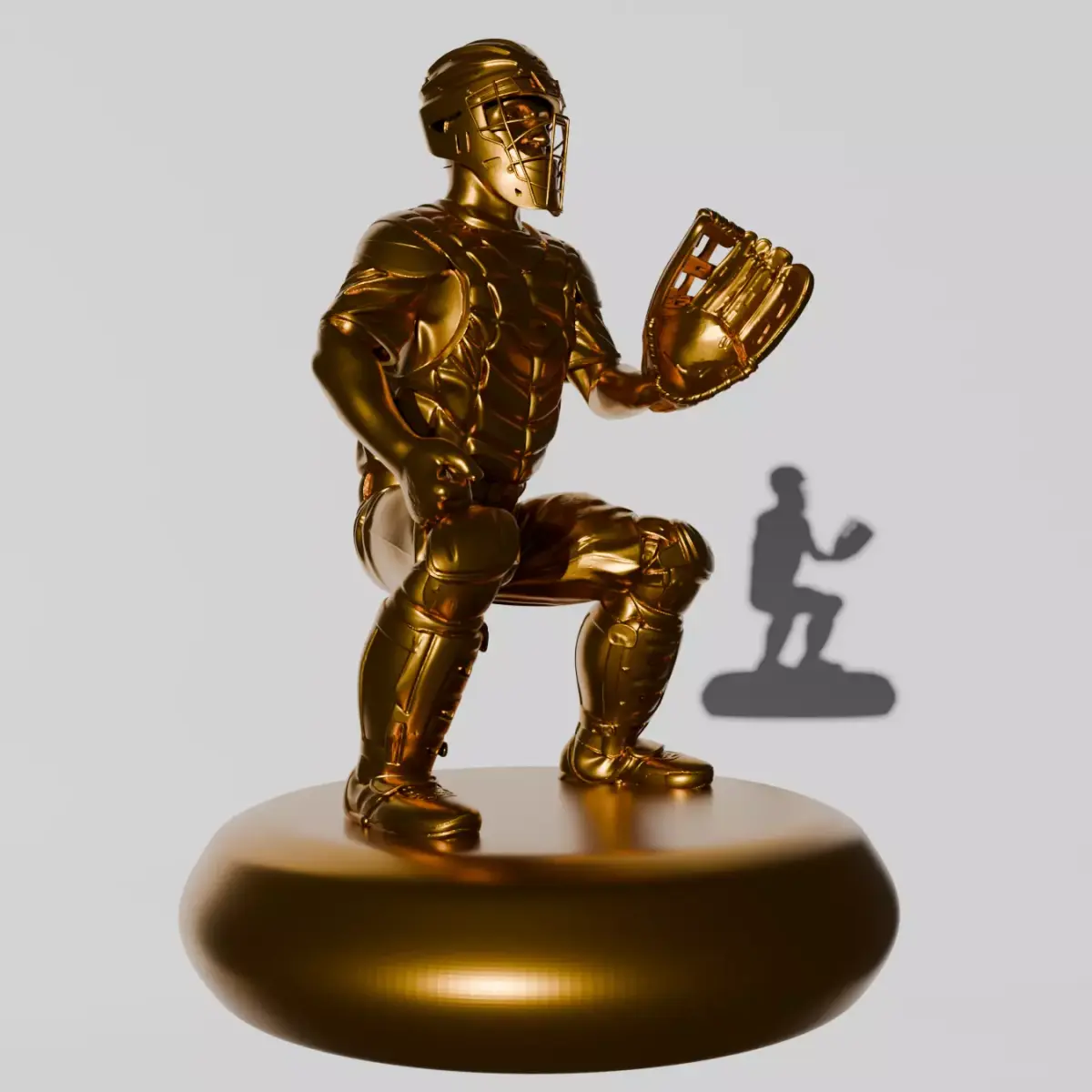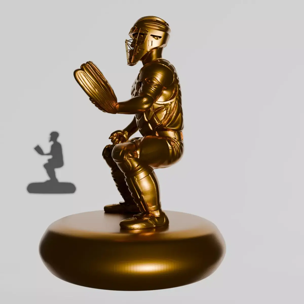 Highly detailed 3D model of a baseball player (catcher) in a realistic defensive stance, inspired by professional playing posture, ideal for collectors, dioramas, trophies, sports décor, and action figures.