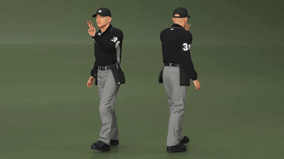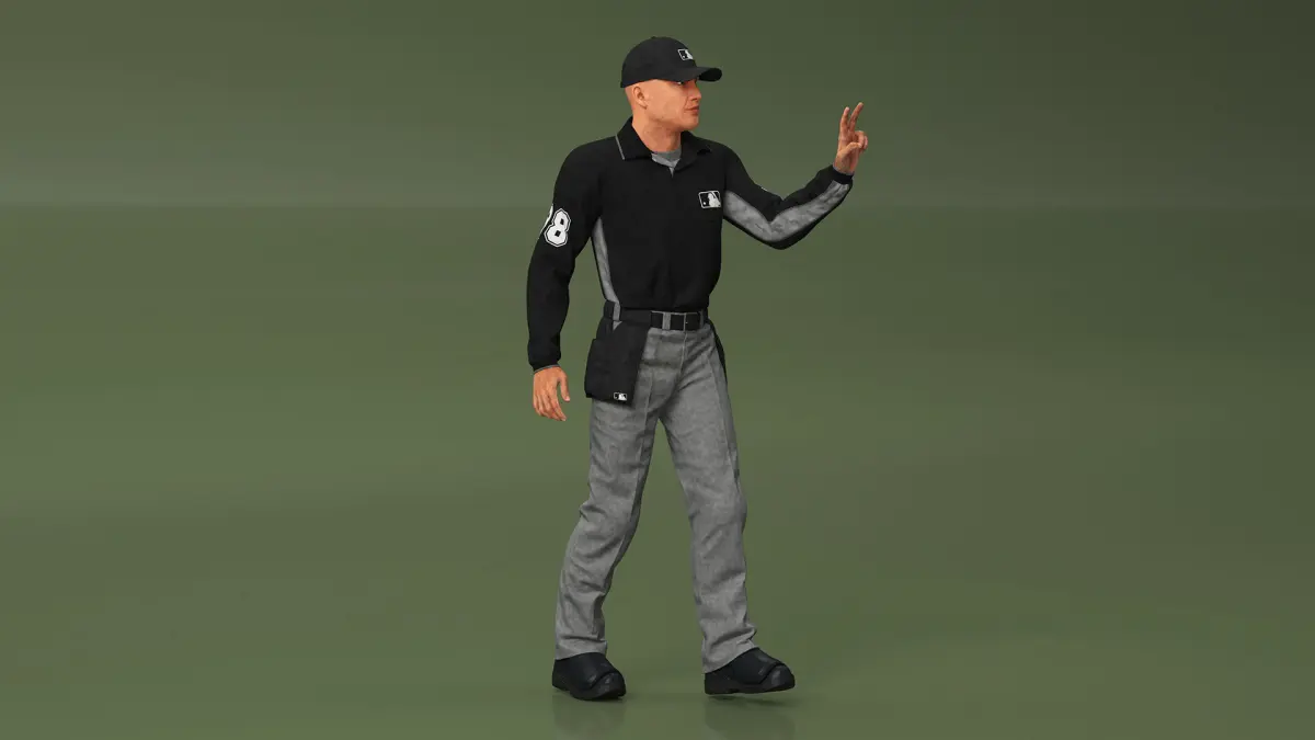 For baseball game, sporting recreation, baseball sport accessories, baseball promotion, baseball sport events, active rest, baseball sporting, baseball tools, healthy lifestyle, sport show business, and baseball sport equipment.Baseball Umpire in Cap Showing Points is a high quality, photo real 3d model that will enhance detail and realism to any of your rendering projects. The model has a fully textured, detailed design that allows for close-up renders, and was originally modeled in 3ds Max 2020 and rendered with V-Ray. Renders have no postprocessing!