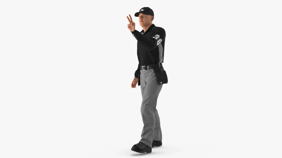 Baseball Umpire in Cap Showing Points is a three-dimensional model of crucial official in a baseball game which responsible for making impartial judgments on plays, enforcing the rules, and ensuring fair competition.