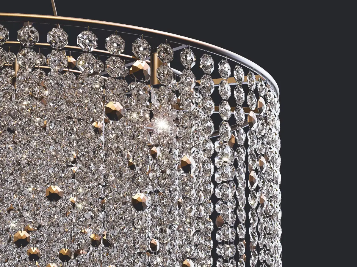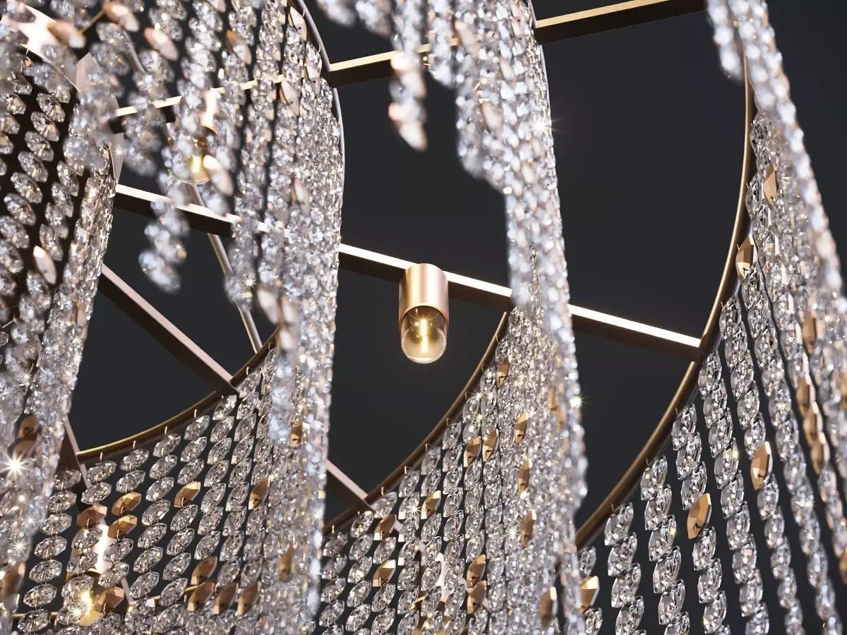 High-quality 3D model of the Varsovia Suspension Light by Castro Lighting, designed in a modern Art Deco style. The lamp features a refined brass structure with six elegant white glass globes, ideal for luxurious interiors — dining rooms, living rooms, or hotel spaces.