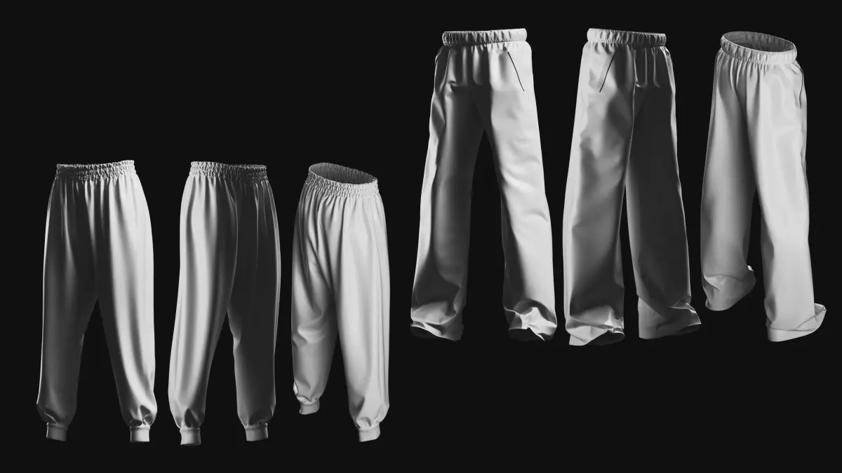 There are 52 pants meshes + male and female basemesh. Each mesh have one base pivot (very useful for allign to male and female basemesh)